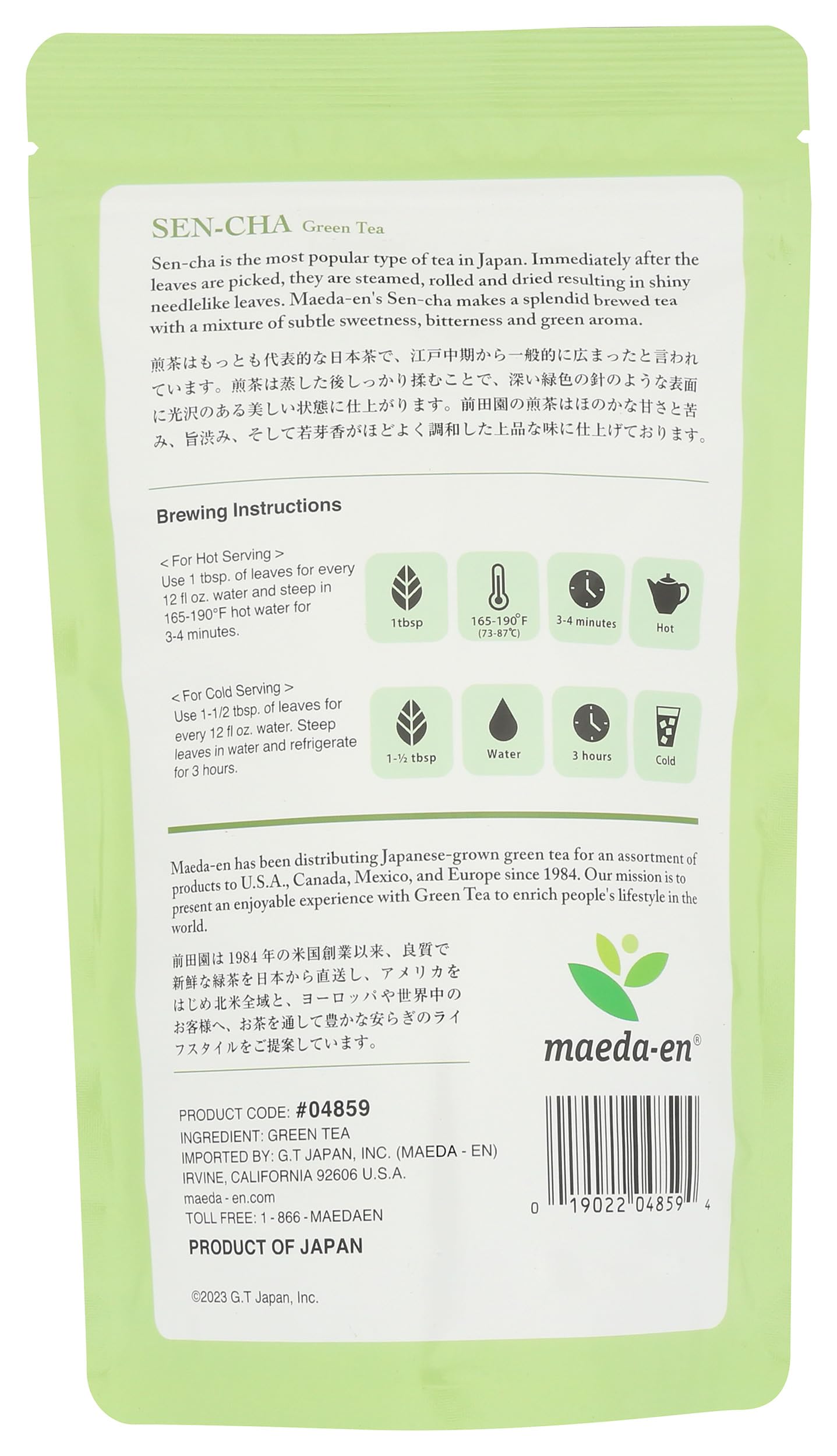 - Q: How should I prepare Maeda Sen Cha Green Tea for the best flavor? A: To prepare Maeda Sen Cha Green Tea, use water heated to about 175°F (80°C) and steep the tea leaves for 1 to 2 minutes. This temperature preserves the delicate flavors and prevents bitterness.