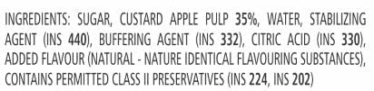 Q: What is Manama Custard Apple Fruit Crush made from?A: Manama Custard Apple Fruit Crush is made from high-quality custard apples sourced directly from Manama farms, ensuring an authentic and delicious flavor.