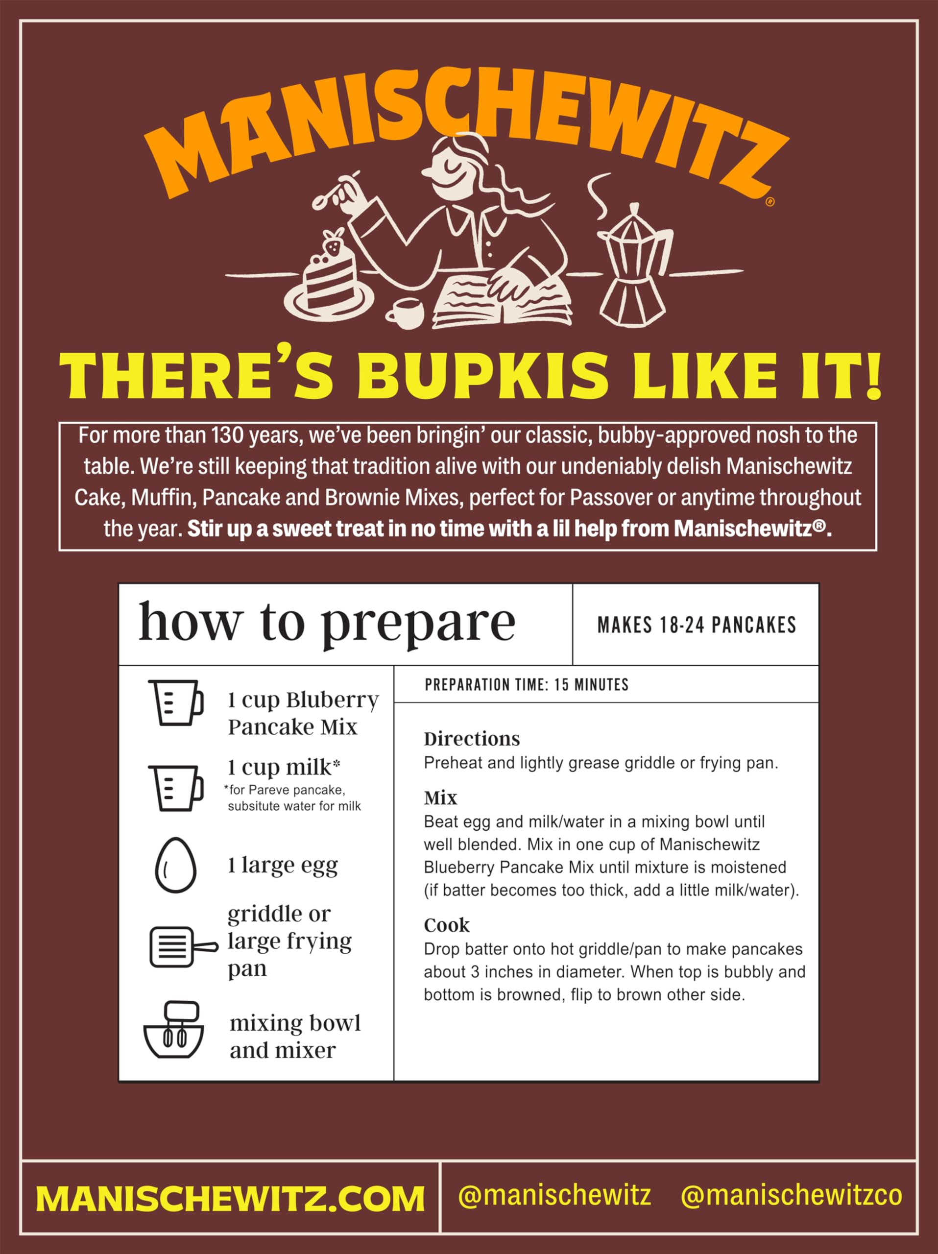 Manischewitz Melt-In-Your-Mouth Juicy Blueberry Goodness Makes This An Awesome Pancake Mix. Made With Real Blueberries For A Really Good Pancake!