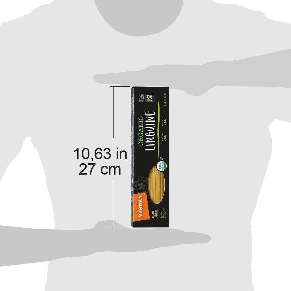 - Q: What is the packaging size of Mantova Italian Organic Fettucini Pasta? A: Mantova Italian Organic Fettucini Pasta is available in a sixteen-ounce package, and it comes in a pack of six, totaling ninety-six ounces.