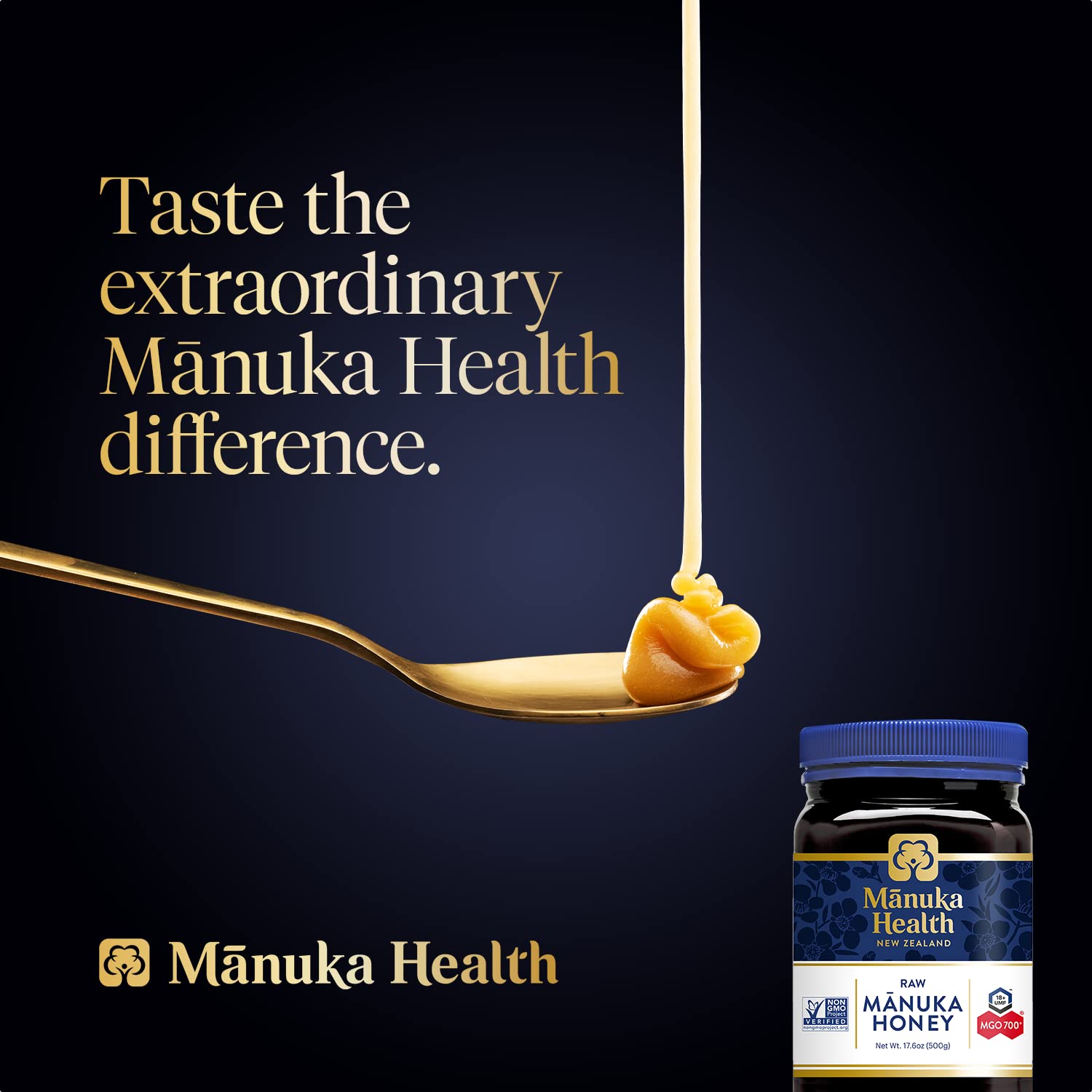 - Q: What makes Manuka Health UMF 18+/MGO 700+ Manuka honey different from regular honey? A: Manuka Health UMF 18+/MGO 700+ Manuka honey is unique due to its high concentration of methylglyoxal (MGO), which is known for its potent antibacterial properties. Unlike regular honey, this Manuka honey is certified for its quality and authenticity, ensuring you receive a product that supports natural immune health.