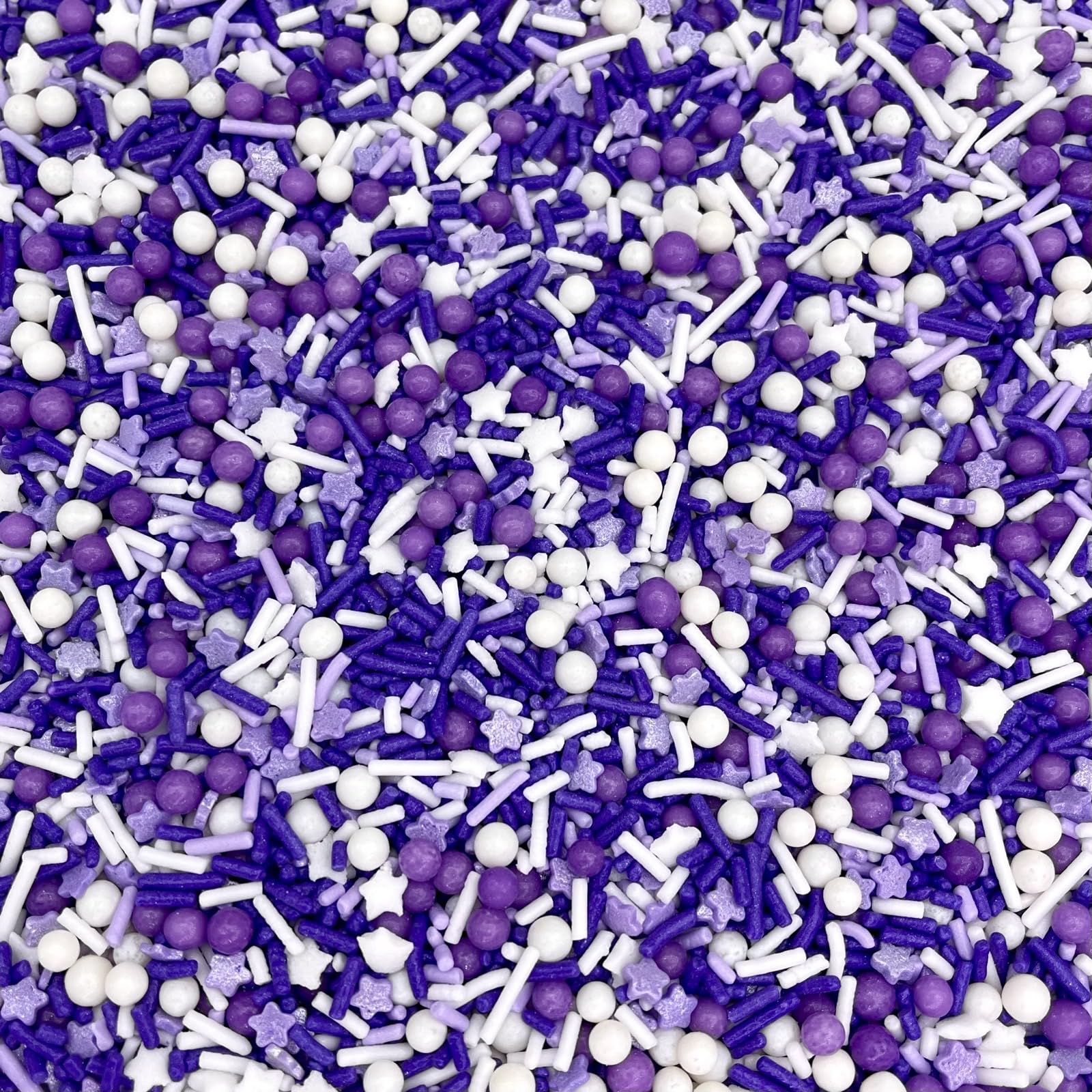 Manvscakes Sprinkles create a sweet and cheerful party or celebration with four ounces of bright, festive, beautiful purple and silver-themed sprinkles. These metallic toppings are a pack of sprinkle mix consisting of jimmies, nonpareils, sugar pearls, and confetti sprinkles. Our sprinkles ensure a perfect decoration for your pastries at birthday parties, anniversaries, graduation parties, baby showers, and other themed parties.