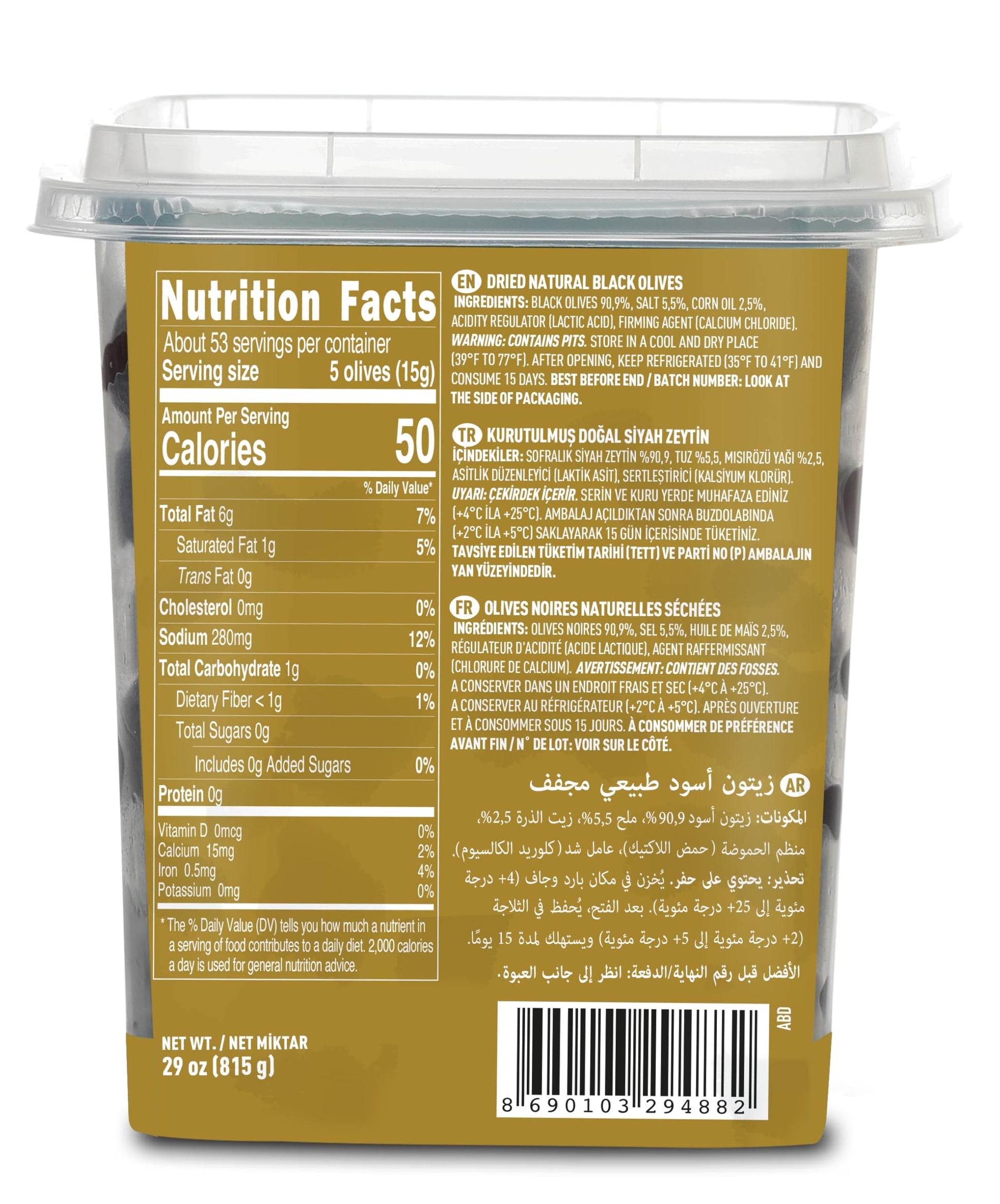 Marmarabirlik Black Olives, Turkish Dry Cured Black Olives, Hand-Picked, Healthy Snacks, Savory Mediterranean Taste, Great for S
