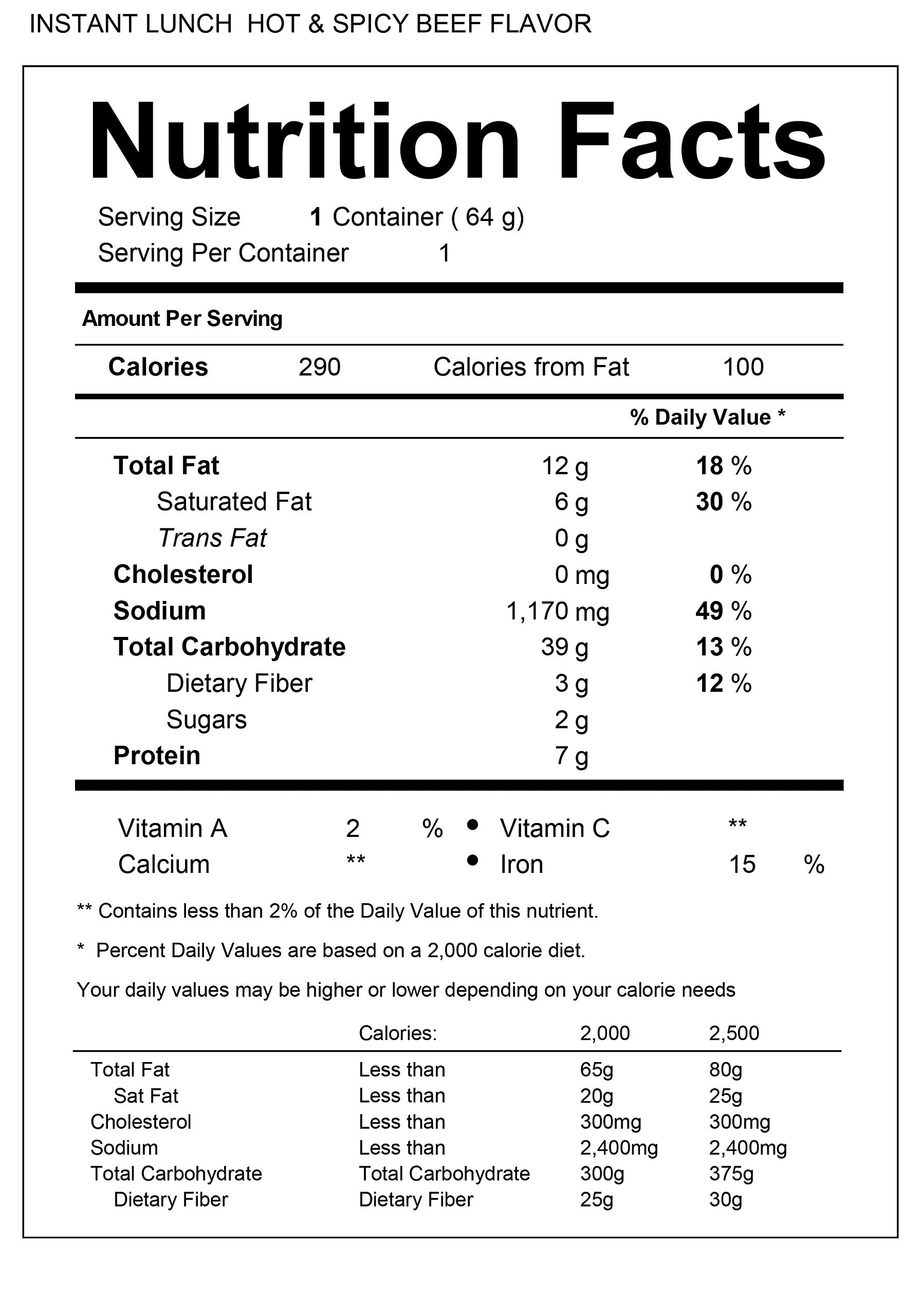- Q: How do you prepare Maruchan Instant Lunch Hot & Spicy Beef Ramen? A: To prepare Maruchan Instant Lunch Hot & Spicy Beef Ramen, simply fold the lid halfway and fill the cup to the inside line with boiling water. Secure the lid and let it stand for 3 minutes. After that, remove the lid, stir well, and enjoy your delicious ramen directly from the cup.