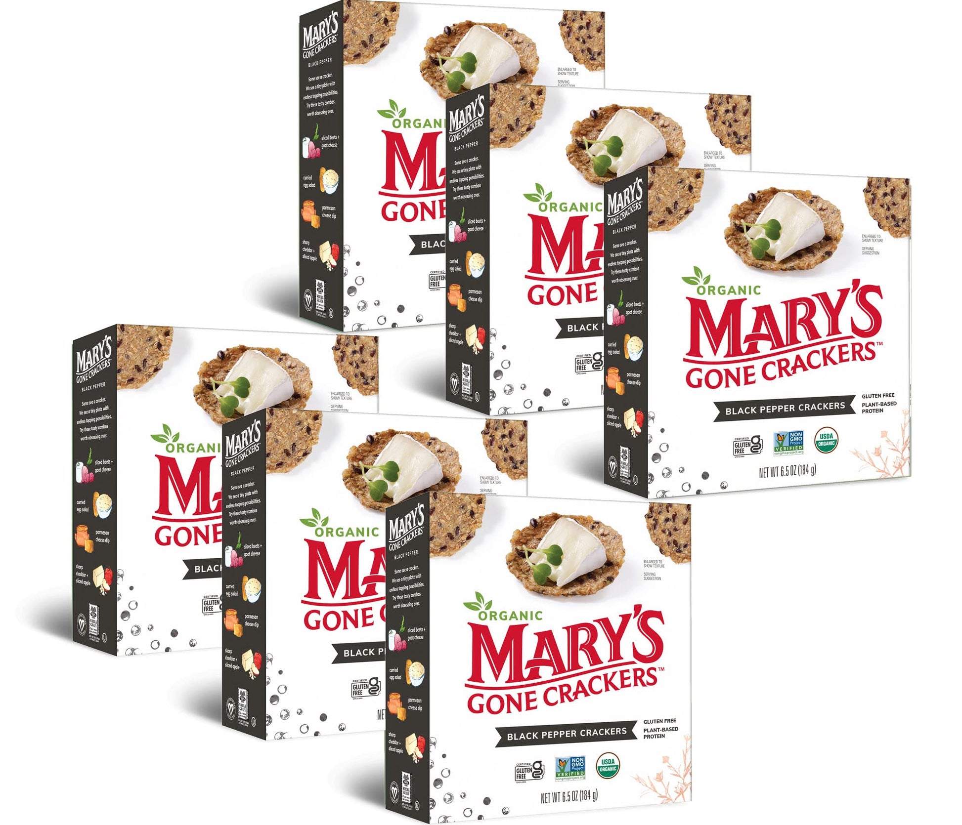 Q: Are Mary's Gone Crackers Black Pepper Crackers gluten-free?A: Yes, Mary's Gone Crackers Black Pepper Crackers are certified gluten-free, making them a great snack option for those with gluten sensitivities or celiac disease.