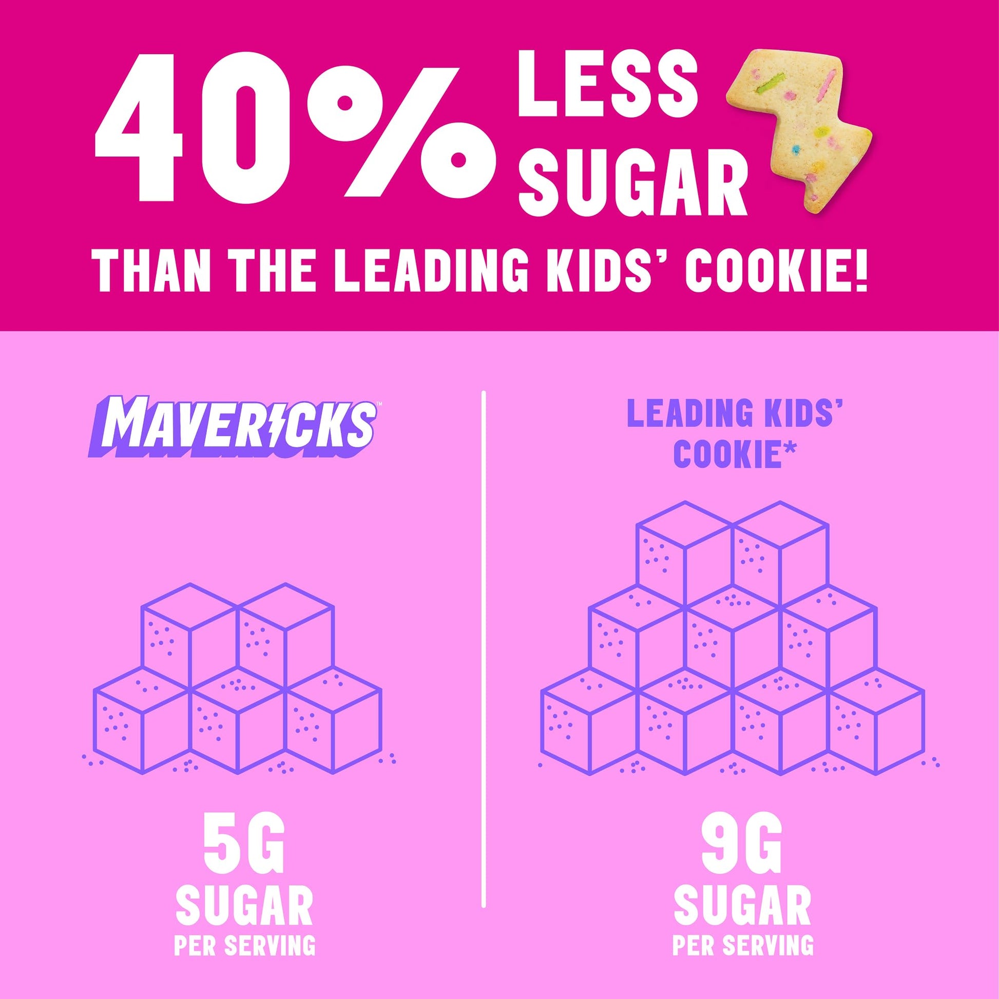 Q: What is the sugar content in Mavericks cookies?A: Each serving of Mavericks cookies contains only 5g of sugar, which is 40% less sugar than the leading natural kids cookie brand.