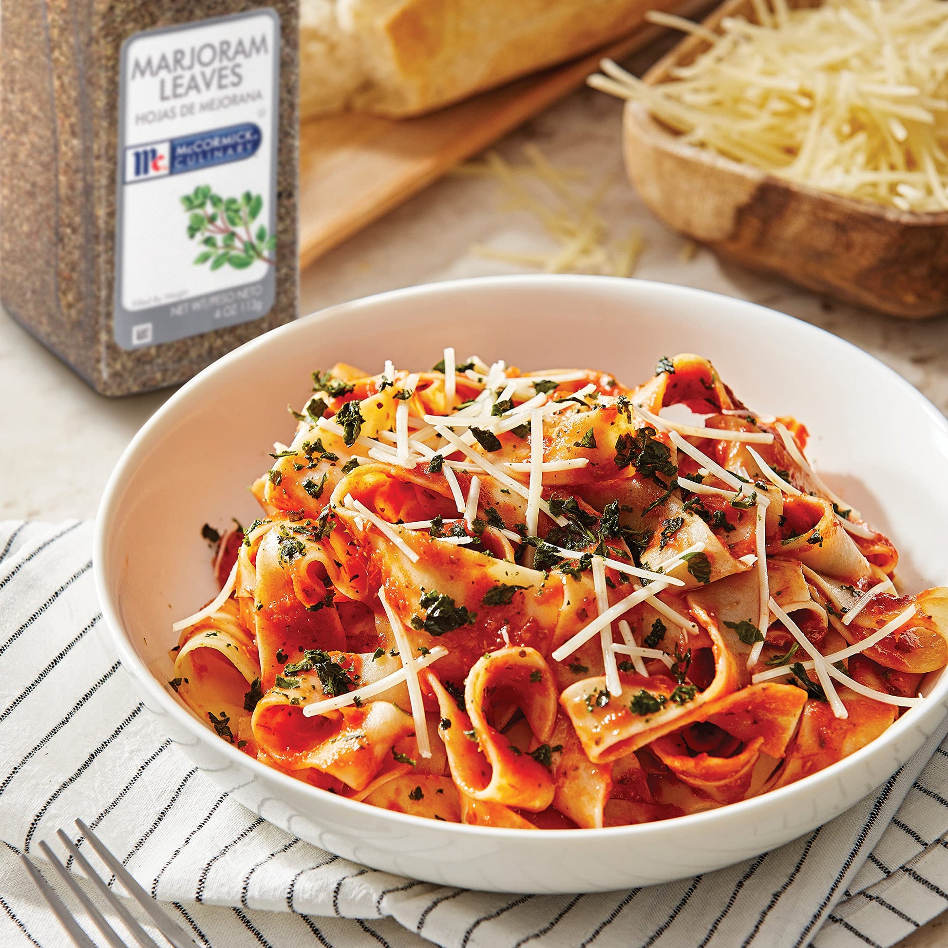 Marjoram is an herb that's commonly used in Mediterranean cuisine. Similar to oregano, it delivers a savory finish in many different kinds of dishes. With McCormick Culinary Marjoram Leaves, you can capture the herb's signature, minty-sweet taste in one convenient, ready-to-use container. This herb will help you create extraordinary menu items that keep your customers coming back. To achieve this distinct flavor profile, whole marjoram leaves are carefully sourced and selected. Then, these light gray-green leaves are dried to release the minty, slightly bitter taste. The finished result is a coarsely ground and pleasantly aromatic herb that will transform whatever entr e, side or sauce you mix it into. Having this 4-ounce container of marjoram makes it quick and easy to customize signature dishes and create new menu items. Because it's made with culinary professionals in mind, you can count on it to deliver quality and flavor consistency every time you use it. Dried marjoram will become a pantry staple in your kitchen with its unique flavor profile and versatile application. Marjoram spice is ideal for endless recipe applications. You can use it to create robust rubs for meats or infuse vegetable side dishes with a unique taste. It also pairs well with other herbs and spices, such as basil or thyme, whenever you want to create aromatic sachets for stews or braises. Do you have a recipe that calls for fresh marjoram? Just substitute 1 teaspoon of dried marjoram leaves for every 2 teaspoons of chopped fresh marjoram, and you'll be good to go. To treat your customers to nothing but the best. Also, since this herb is kosher, you can treat even more people to delicately flavored dishes.