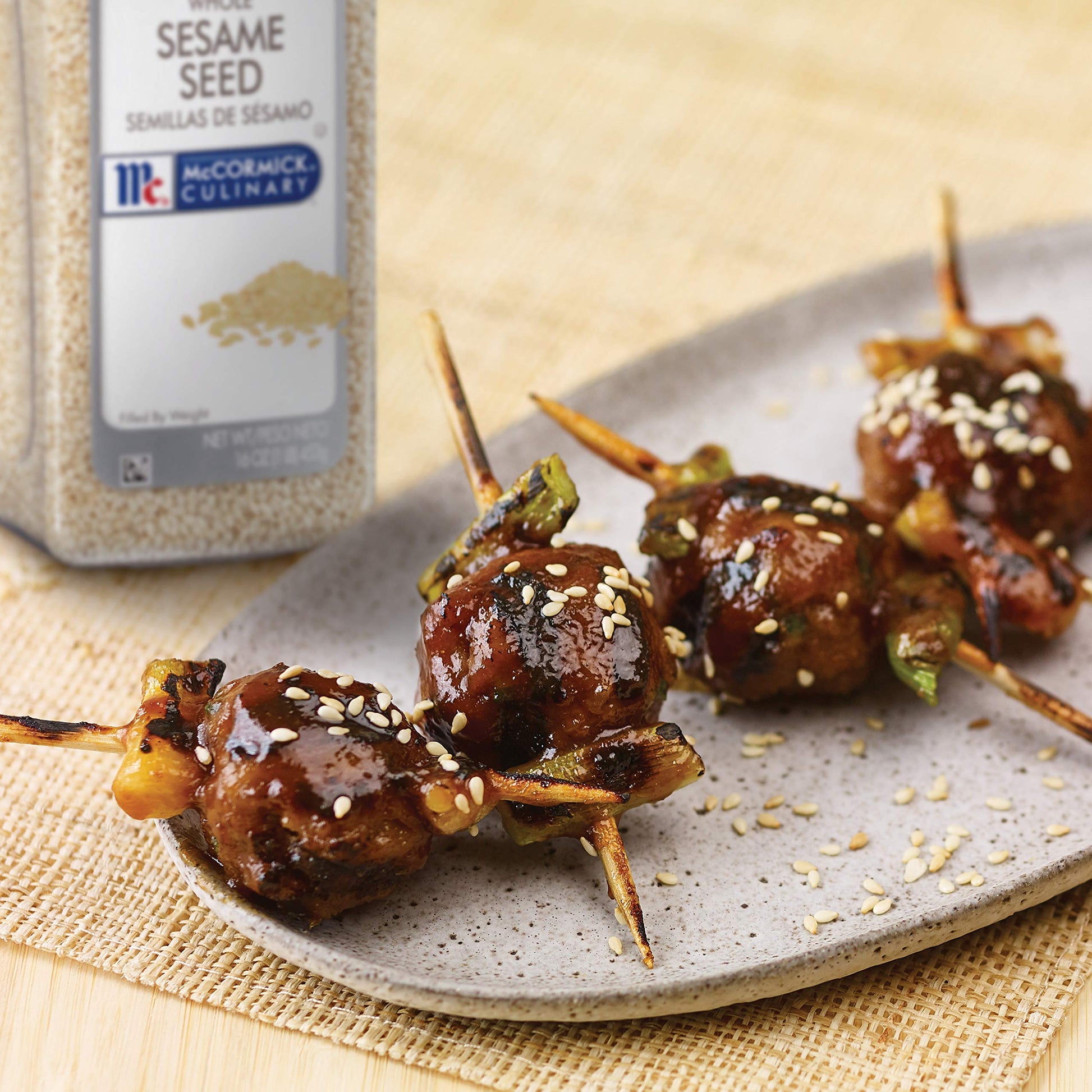 • Q: What dishes can I use McCormick Culinary Whole Sesame Seeds in? A: McCormick Culinary Whole Sesame Seeds are versatile and can be used in a variety of dishes including sushi, Asian stir-fries, noodle dishes, and as a coating for meat and fish. They can also enhance salads, rice dishes, and even desserts.