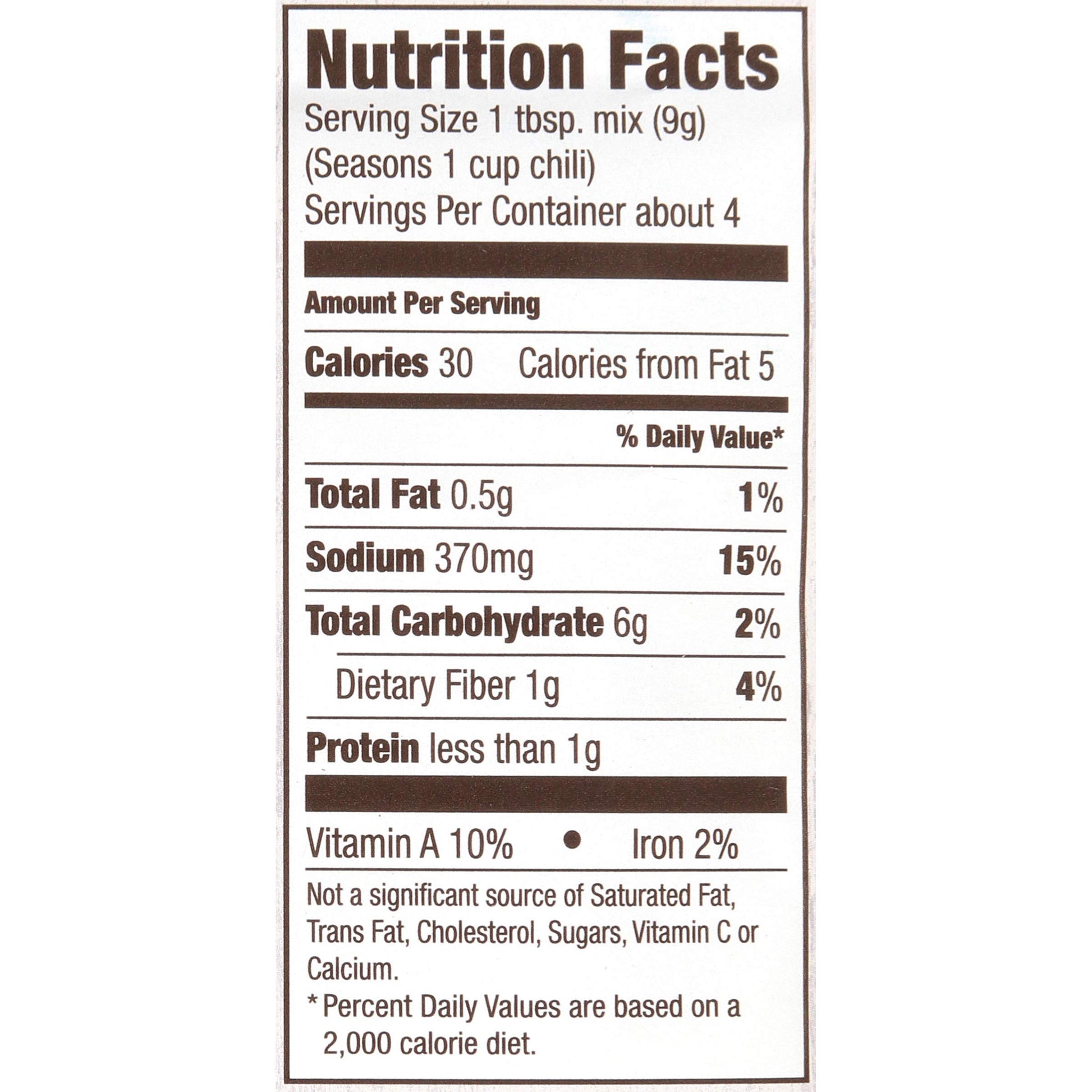 McCormick Chili Seasoning Mix Makes Every Night Chili Night! Just grab all the fixins and you've got a party! Just this drool-worthy signature all-natural spice mix into your favorite chili recipe, and create a dish that will win you first prize at every chili cook-off you enter! Created with the highest-quality ingredients, our expertly blended mix contains no MSG, artificial flavors or added colorings, so you know you're serving your family the very best. Best part? It's fast. Five minute prep and 15 minute cooking will yield you chili that tastes like it's been cooking over an open fire all day. Each package makes four servings.
