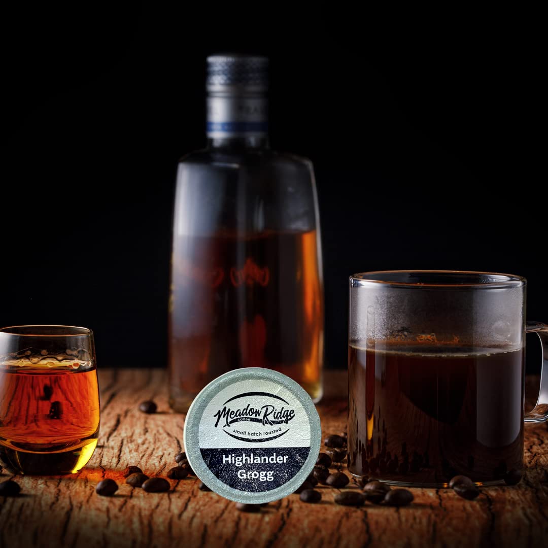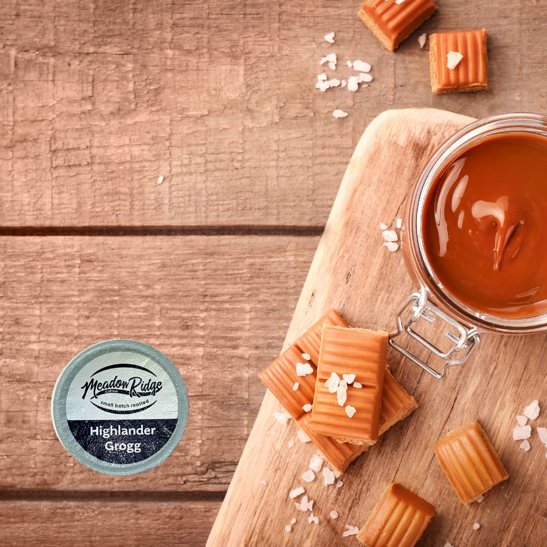 Q: What is the flavor profile of Meadow Ridge Coffee Highlander Grogg?A: Meadow Ridge Coffee Highlander Grogg features a delightful combination of caramel, butterscotch, and hints of rum, inspired by Scottish traditions.