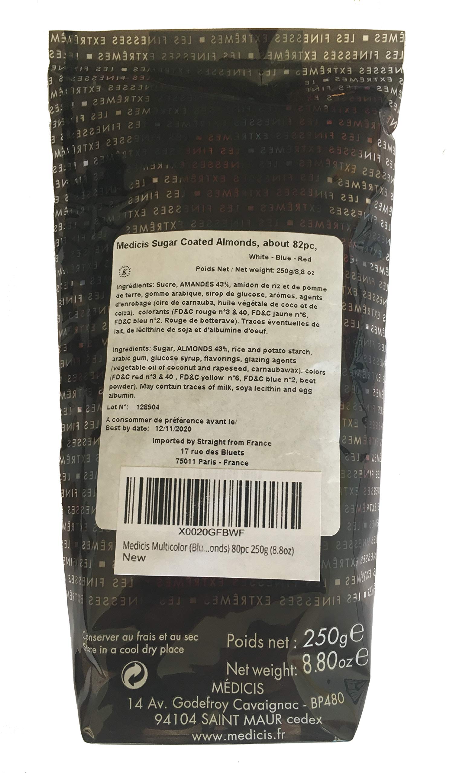 Made By Medicis, Arguably France'S Most Renowned Expert In Dragee Making, These Sugar Coated Almond Candies Are Premium Quality. Sometimes Referred To As Italian Confetti Almonds, Jordanian Almonds, Almendras Confitadas Or Koufeta By The Greek Orthodox, Sugared Almonds Are A Traditional Almond Candy That Is Often Used As A Party Favor (Baby Showers Or Wedding Favors Mainly) In Many Cultures. In France, Dragees Are Customary For Religious Celebrations Such As Baptism And First Communion. Made With Top Quality Lerida Almonds, These French Candies Are Also Perfect As A Get Well Or A Thank You Gift. They Are Also Suitable As A Cake Decoration, Or Simply As A Snack. These Delicious Candy Coated Almonds Are Available In White, Pink, Blue, Red, Green, Oxford Green, Yellow And Multicolor (White, Blue And Red) In 8.8Oz Bags (About 75 Pieces Per Bag) And In Bulk In 2.2Lbs Bags (About 300 Pieces Per Bag). These Delicious Candied Almonds By Medici Are Kosher K Certified. These Multicolor (White, Red And Blue) Jordan Almonds Are Imported Straight From France.