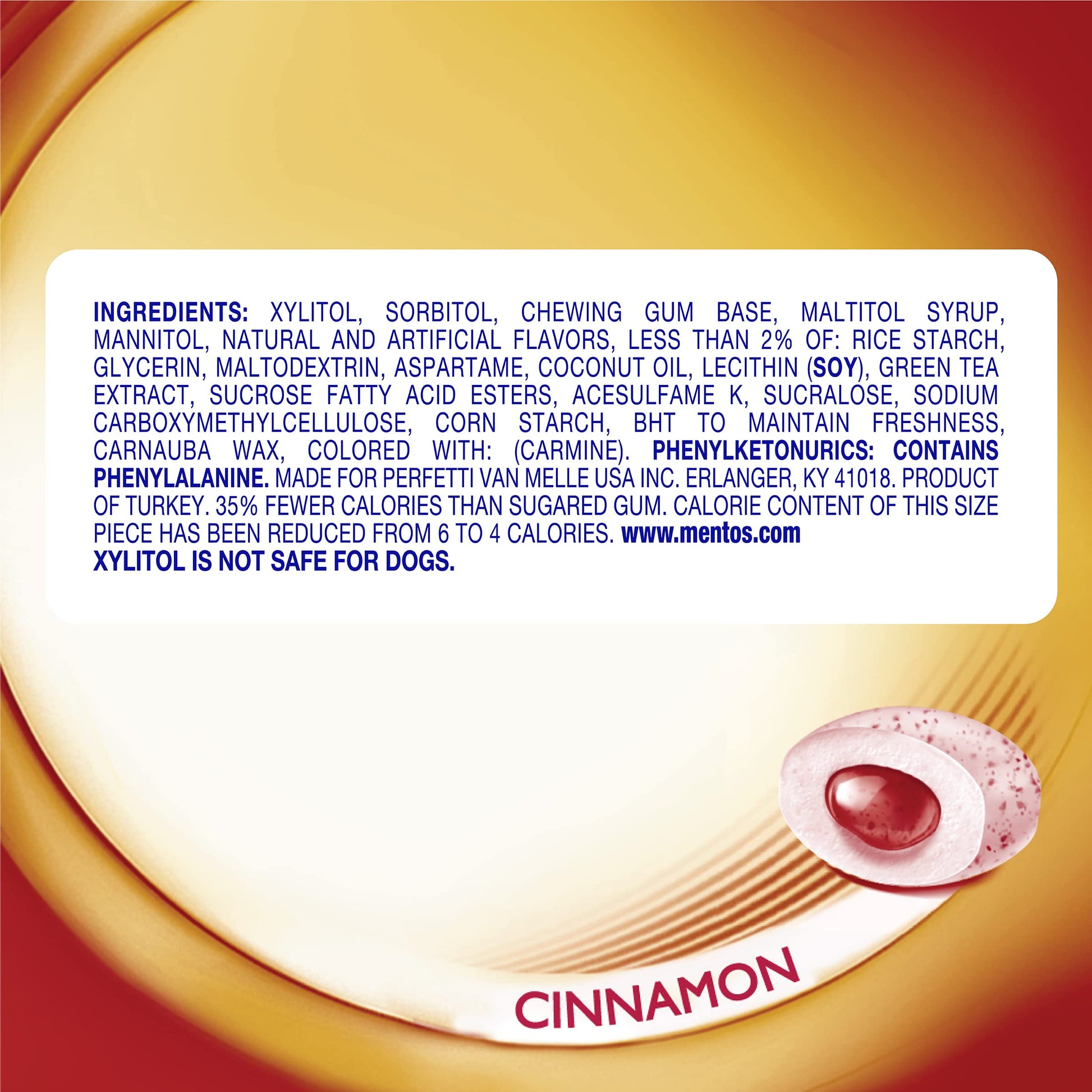 Q: What are the main benefits of Mentos Pure Fresh Sugar-Free Gum?A: Mentos Pure Fresh Sugar-Free Gum offers a burst of cinnamon flavor in each piece while helping to reduce the risk of tooth decay thanks to its xylitol content. It's a guilt-free treat that freshens your breath and satisfies your chewing cravings.