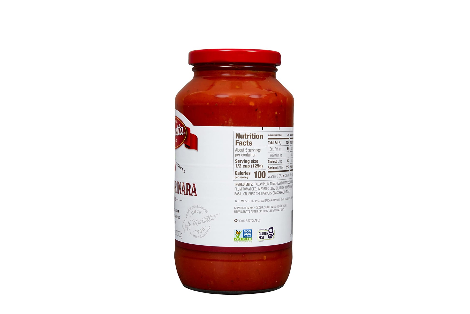 MARINARA THAT KICKS: Nonna liked a little spice on occasion; Experience Arrabbiata-like sauce combined with sweet plum tomatoes and slow-simmered with garlic, fresh onions, aromatic basil; (6) 25-ounce jars | SPICE UP THE OCCASION: Nonna never picked favorites except when it comes to peppers; Calabrian chilis are native to the Calabrian region on the “toe” of Italy and are prominent in Italian cooking making them a family favorite | CURATED WITH CARE: Our Tomato Sauces are sourced from across the globe to secure only the finest ingredients while developing long-lasting relationships with local farmers; All Sauces are NON-GMO and Gluten Free | OUR PURPOSE: Mezzetta selects the finest ingredients the world has to offer, to inspire more people to add a little more happiness in their life through food; Because when you share food, you're sharing part of who you are | FOUR GENERATIONS IN THE MAKING: Mezzetta is a family-owned company 85 years in the making and we're on a mission - to bring a little happiness to everyday life through handed-down recipes and unforgettable flavors