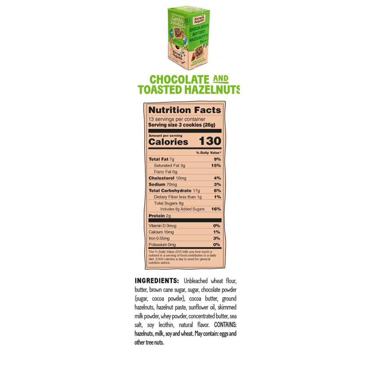- Q: Are the cookies suitable for people with dietary restrictions? A: Michel et Augustin cookies are kosher certified and made without artificial ingredients, preservatives, or GMOs. However, they do contain butter and chocolate, so individuals with dairy allergies or gluten sensitivities should check the specific ingredient list or consult with a professional.