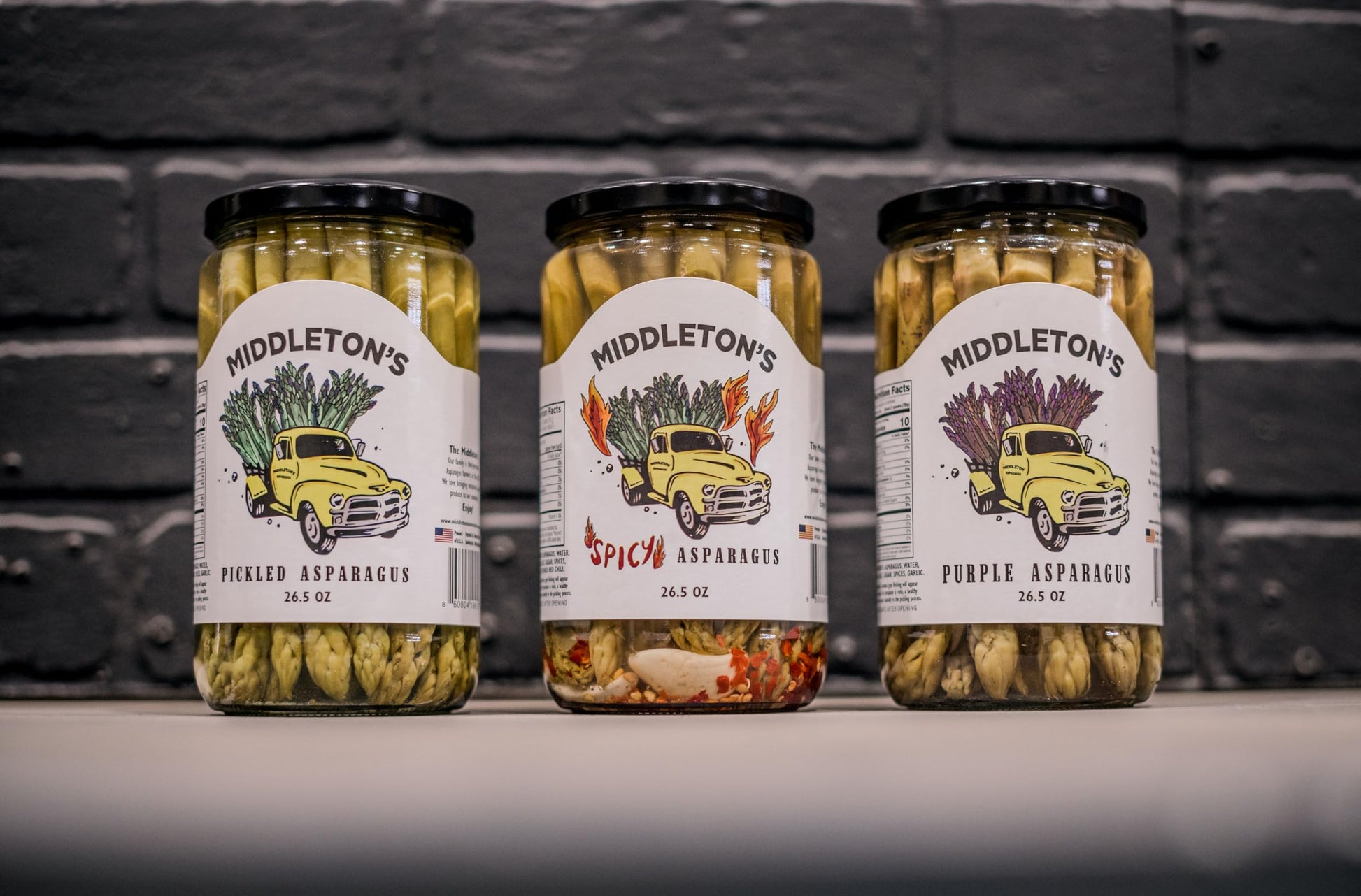 Middleton Farms Pickled Asparagus - Green & Purple Varieties Since 1978, Middleton Farms Has Cultivated High-Quality Green And Purple Asparagus, Harvested At Peak Freshness And Pickled Locally At Johnson Foods. Product Overview: Farm-Grown & Handpicked: Asparagus Is Harvested At Optimal Ripeness And Processed Nearby To Preserve Quality And Texture. Purple Asparagus Note: Raw Purple Asparagus Retains Its Color Until Cooked Or Pickled, Resulting In A Naturally Red-Tinted Appearance In The Jar. Flavor Options: Available In Regular Or Spicy Varieties, Offering A Range Of Flavor Profiles To Suit Different Preferences. Available Packs: Regular Green Pack - Three Jars Of Pickled Green Asparagus. Spicy Green Pack - Three Jars Of Pickled Green Asparagus With Added Spice. Regular Purple Pack - Three Jars Of Pickled Purple Asparagus With A Slightly Sweeter Profile. Spicy Purple Pack - Three Jars Of Pickled Purple Asparagus With Added Spice. Spicy Variety Pack - Includes Spicy Green, Spicy Purple, And Regular Green (One Jar Each). Regular Variety Pack - Includes Regular Green, Regular Purple, And Spicy Green (One Jar Each). Each Jar Contains 26.5 Ounces Of Pickled Asparagus.