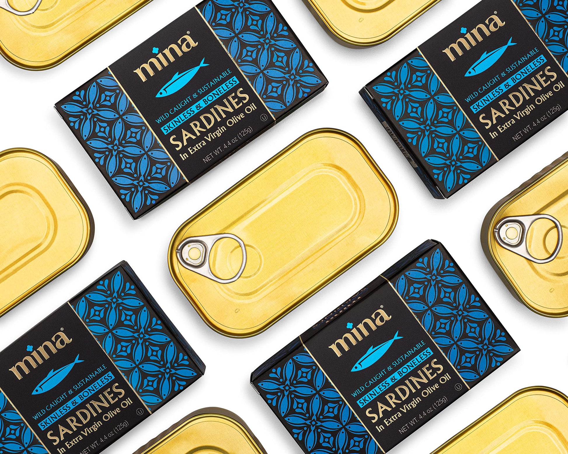 Mina Sardines, Skinless & Boneless Sardines In Extra Virgin Olive Oil, 4.4 Ounce Wild Caught Sardines, Packed By Hand, Low Sodium, High In Protein, Keto, Paleo, Sardines In Olive Oil (Pack Of 12)