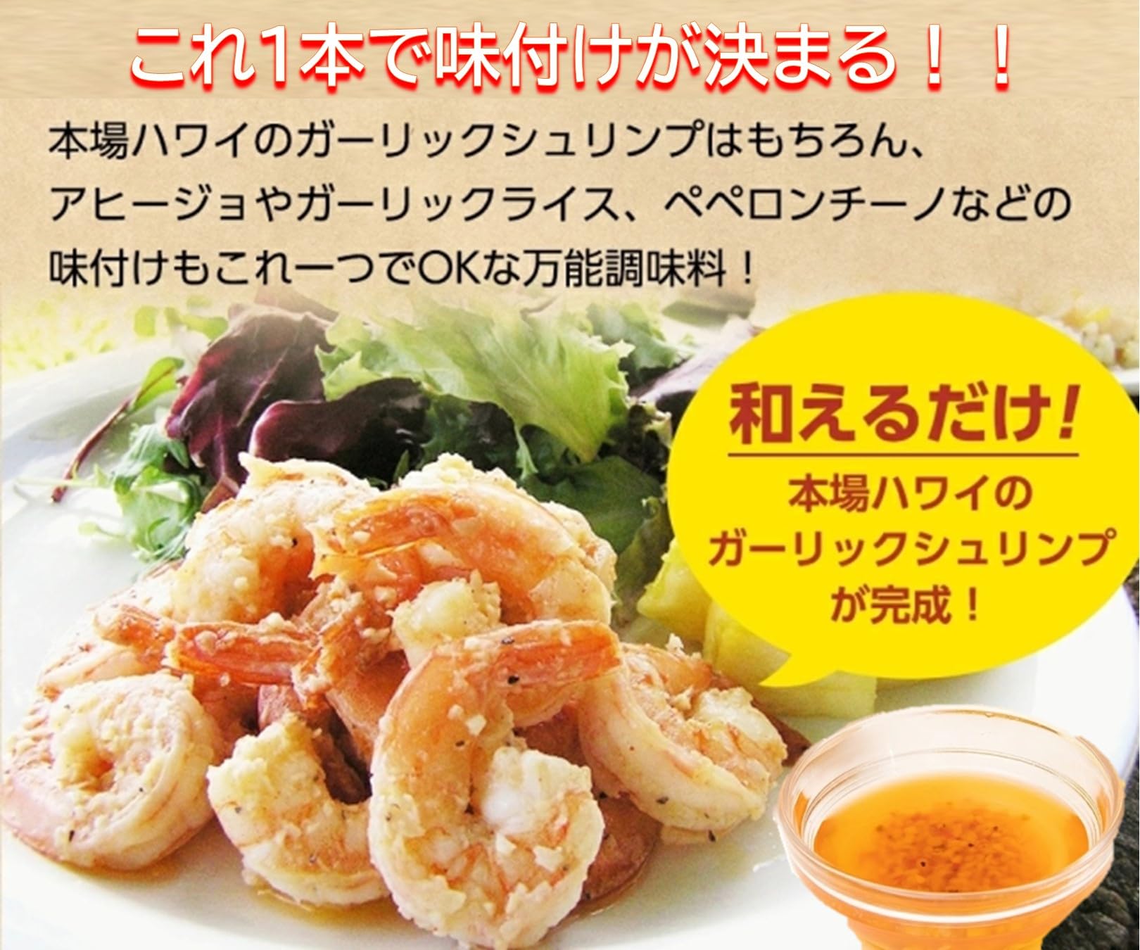 Q: What ingredients are included in MINATOS Hawaiian Style Shrimp Marinade?A: MINATOS Hawaiian Style Shrimp Marinade is crafted from high-quality ingredients, featuring a rich blend of garlic and herbs that enhance the flavor of shrimp and other stir fry dishes.