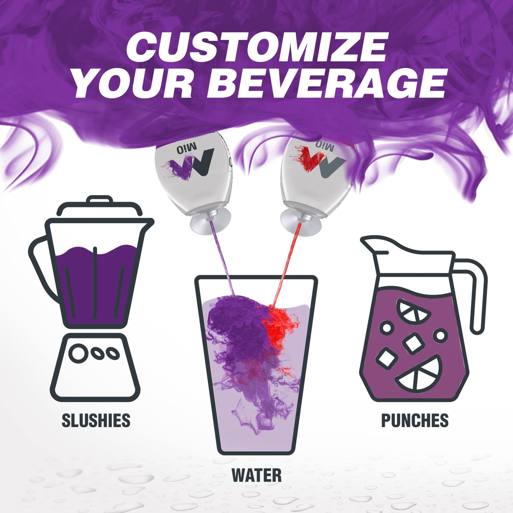 The MiO Naturally Flavored Liquid Water Enhancer Variety Pack fixes plain water and turns it into a refreshing, flavorful drink to invigorate your day. Stock up with our four-count pack that includes 1 MiO Cherry Blackberry, 1 MiO Berry Pomegranate, 1 MiO Strawberry Watermelon and 1 MiO Blueberry Lemonade liquid water flavor drops. Each portable 1.62 fluid ounce bottle of liquid water enhancer neatly fits in your purse, bag or glove box for easy on-the-go mixing. A single squeeze of any bottle of liquid water enhancer delivers bold flavor to bottled water. MiO sugar free liquid water enhancer drink mix provides a burst of flavor with zero calories. With just one squeeze, the MiO Water Enhancer Variety Pack provides enough bold flavor for 8 fluid ounces! Whether you're studying, working or heading to workout, add MiO Cherry Blackberry, MiO Berry Pomegranate, MiO Strawberry Watermelon and MiO Blueberry Lemonade to your water for delicious flavored water that keeps you sipping.
