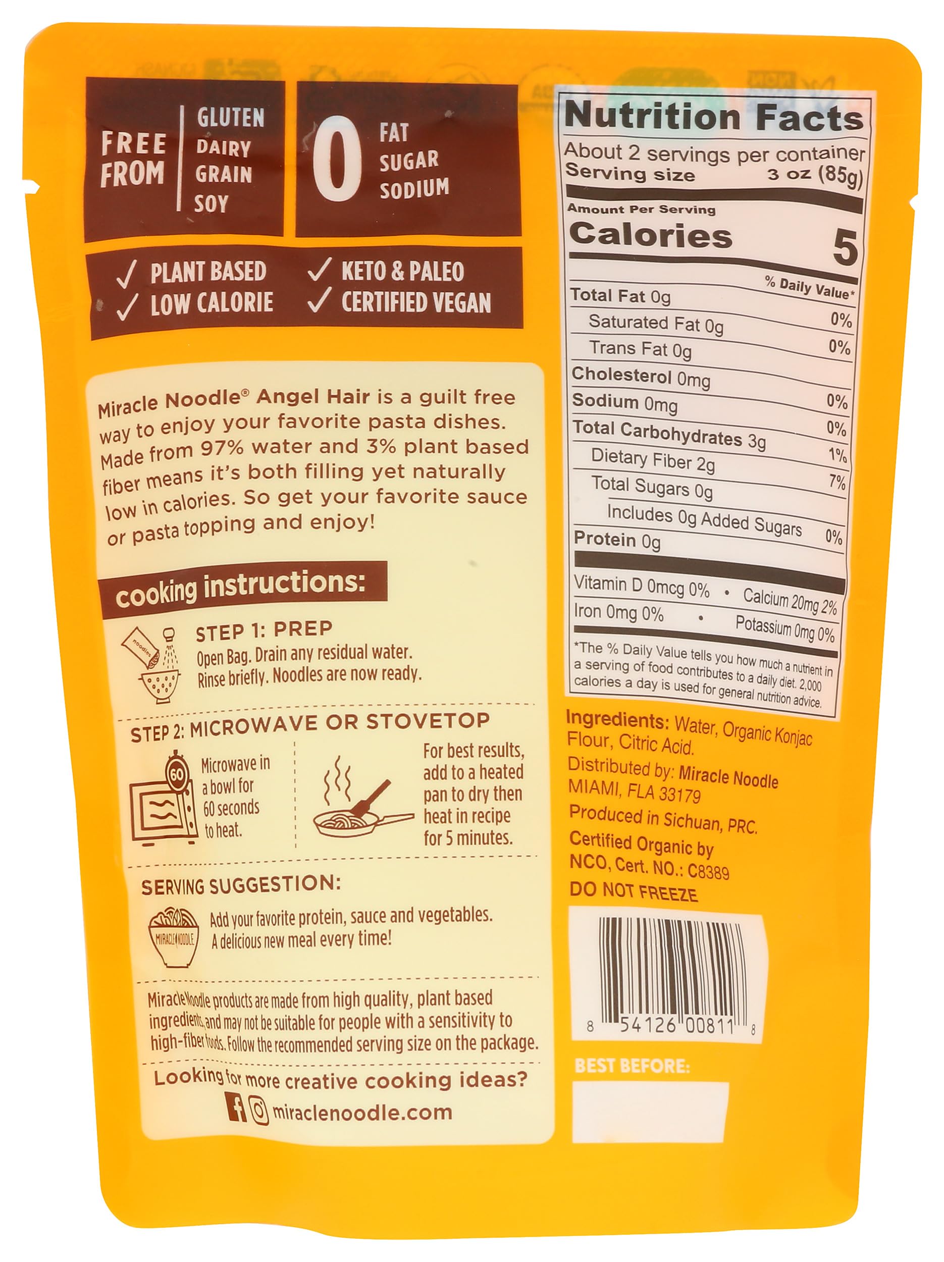 MIRACLE NOODLE Organic Plant Based Angel Hair Noodles, 7 OZ