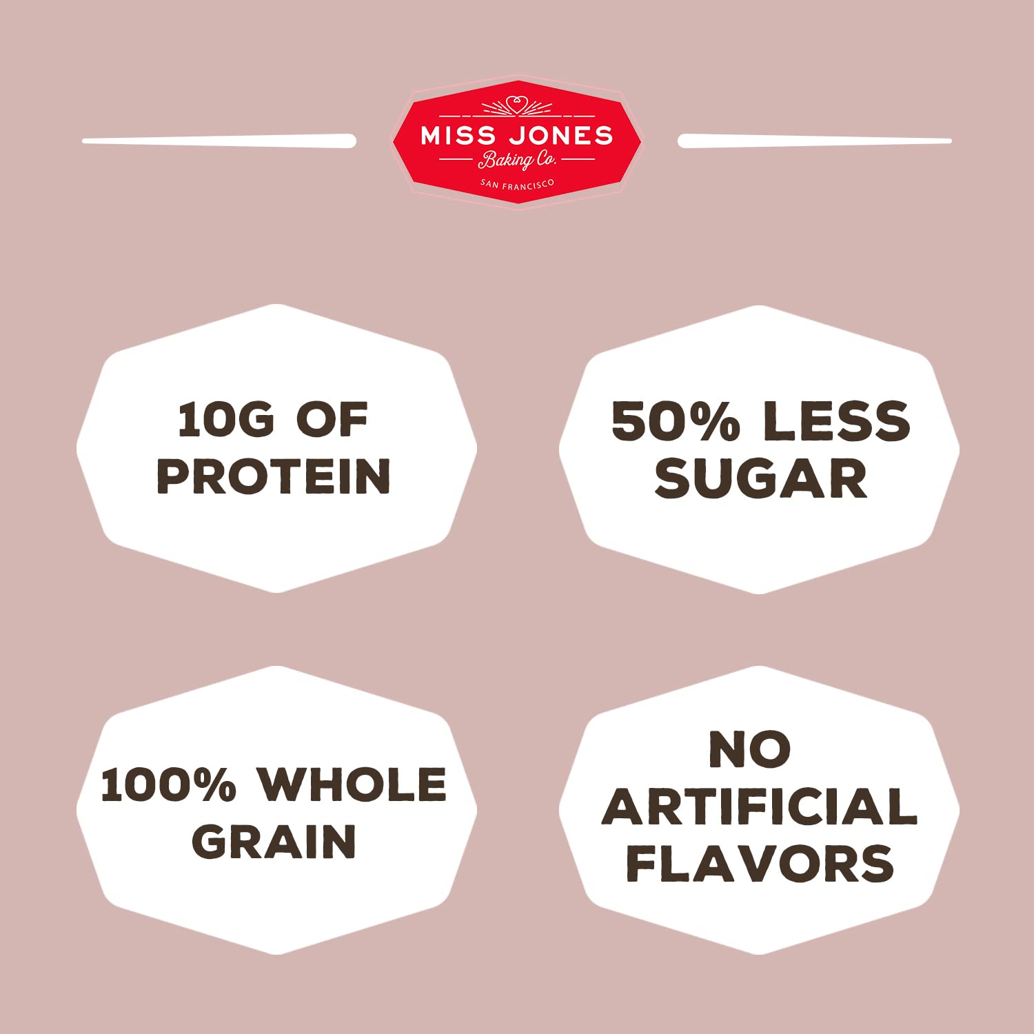 Miss Jones Everyday Delicious Original Oat Flour Pancake and Waffle Mix contains more of what you want and less of what you don’t so you can enjoy breakfast knowing it’s tasty and nutritious to the last bite. Each bag is made with oat flour, gluten free, 100% whole grain and contains 10g of protein. Our Oat Flour Pancakes are made with no artificial colors or flavors. We promise these will be your new favorite breakfast staple.