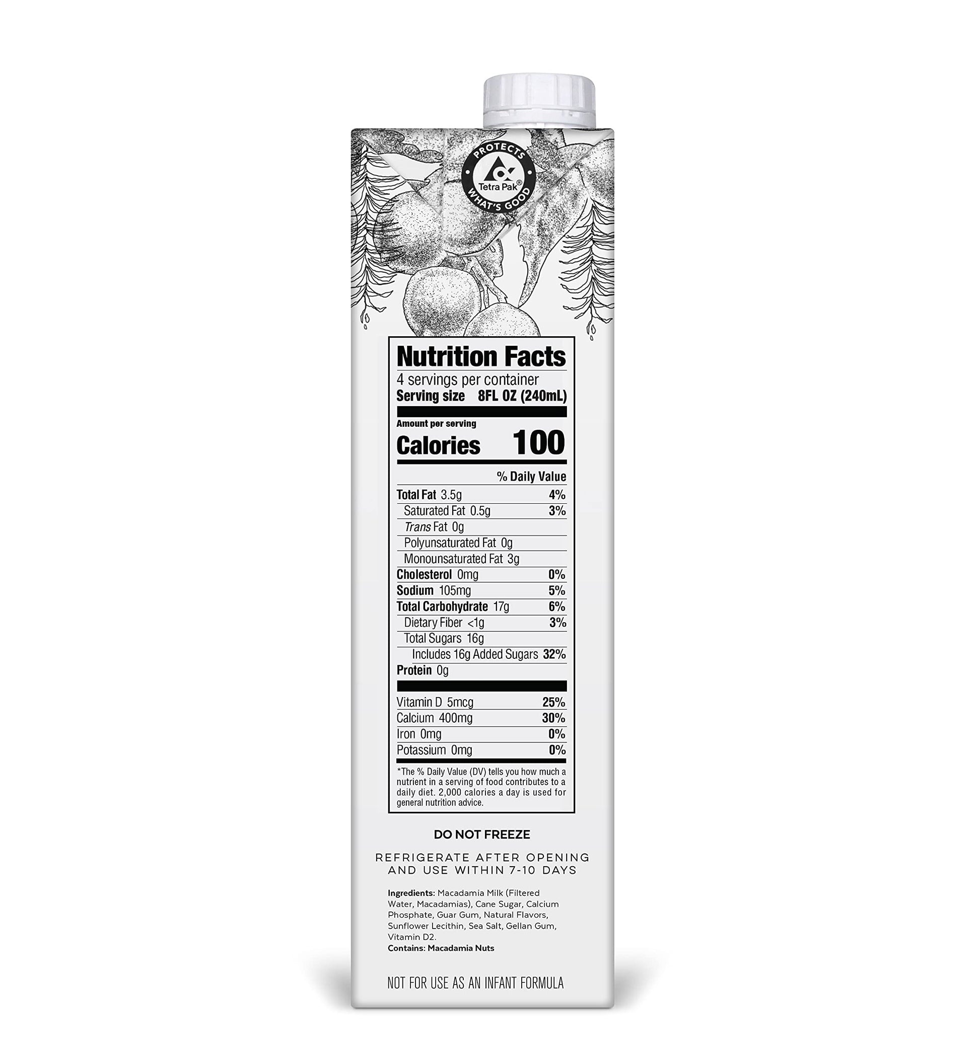 Q: What is milkadamia Veggnog made from?A: milkadamia Veggnog is made from raw, never roasted macadamias, making it a creamy and smooth alternative to traditional eggnog. This plant-based beverage is also Non-GMO Project Verified, Vegan, and Kosher.