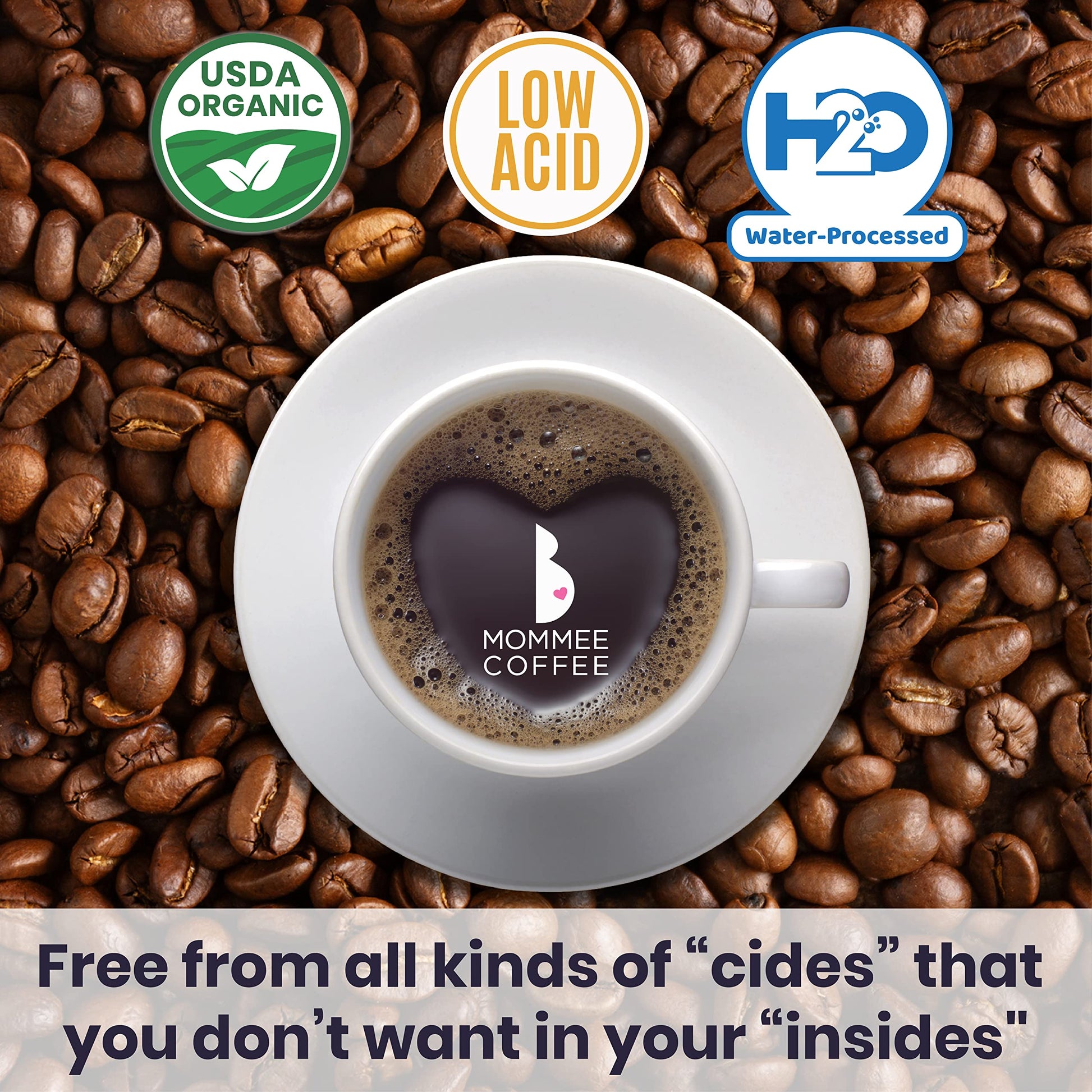 Mommee Coffee - Full Caff Low Acid , Organic, Fair Trade, Water Processed Whole Bean, 22Oz