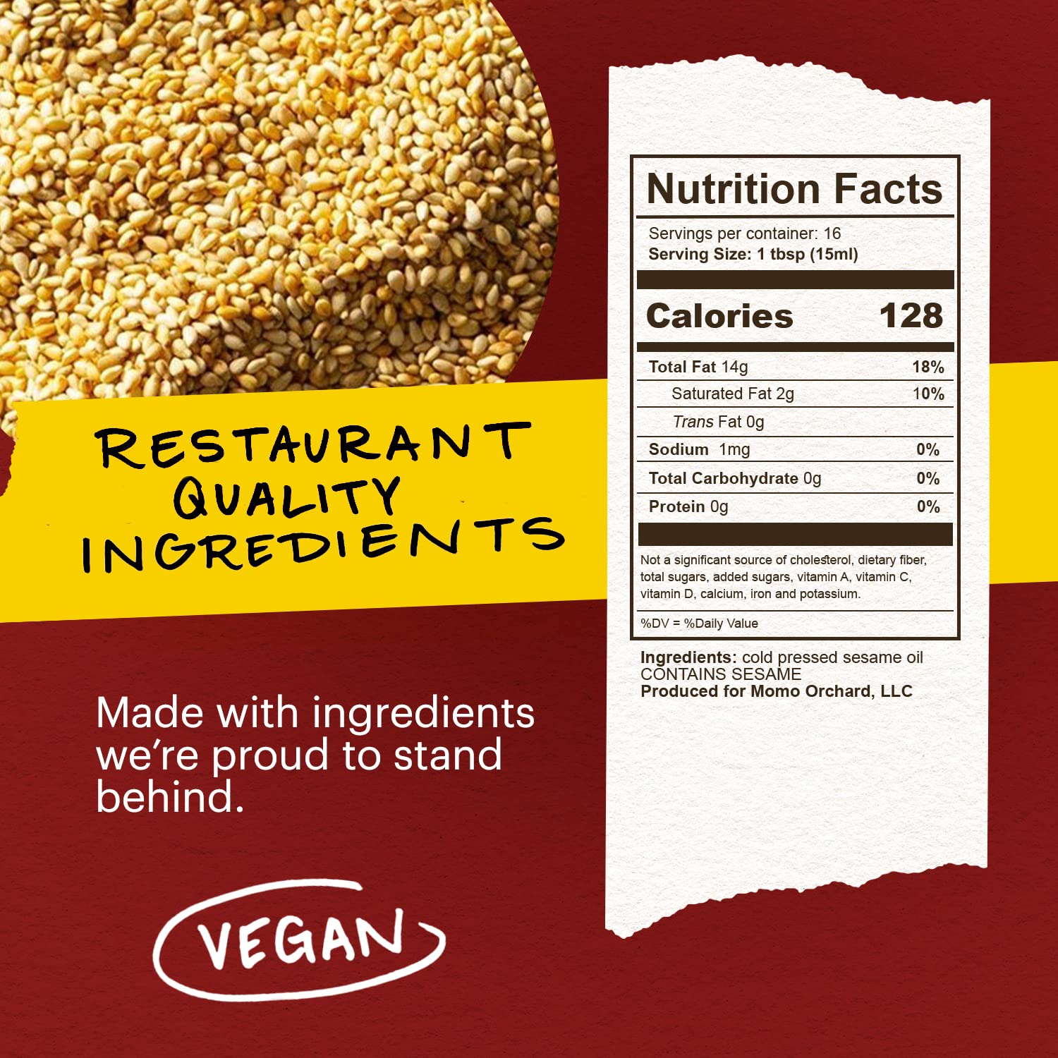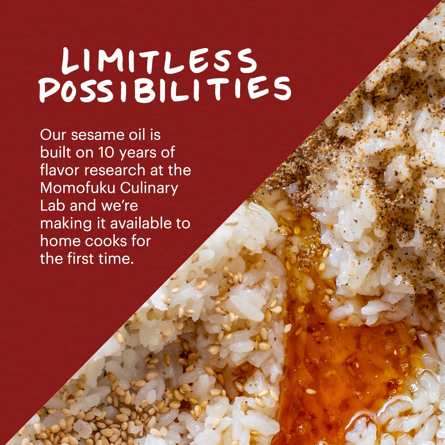 - Q: What makes Momofuku Toasted Sesame Oil different from regular sesame oil? A: Momofuku Toasted Sesame Oil is lightly toasted to enhance the natural flavors of sesame, resulting in a well-balanced, subtle nuttiness that sets it apart from regular sesame oil. Additionally, it's cold-pressed, retaining more nutrients and flavor.