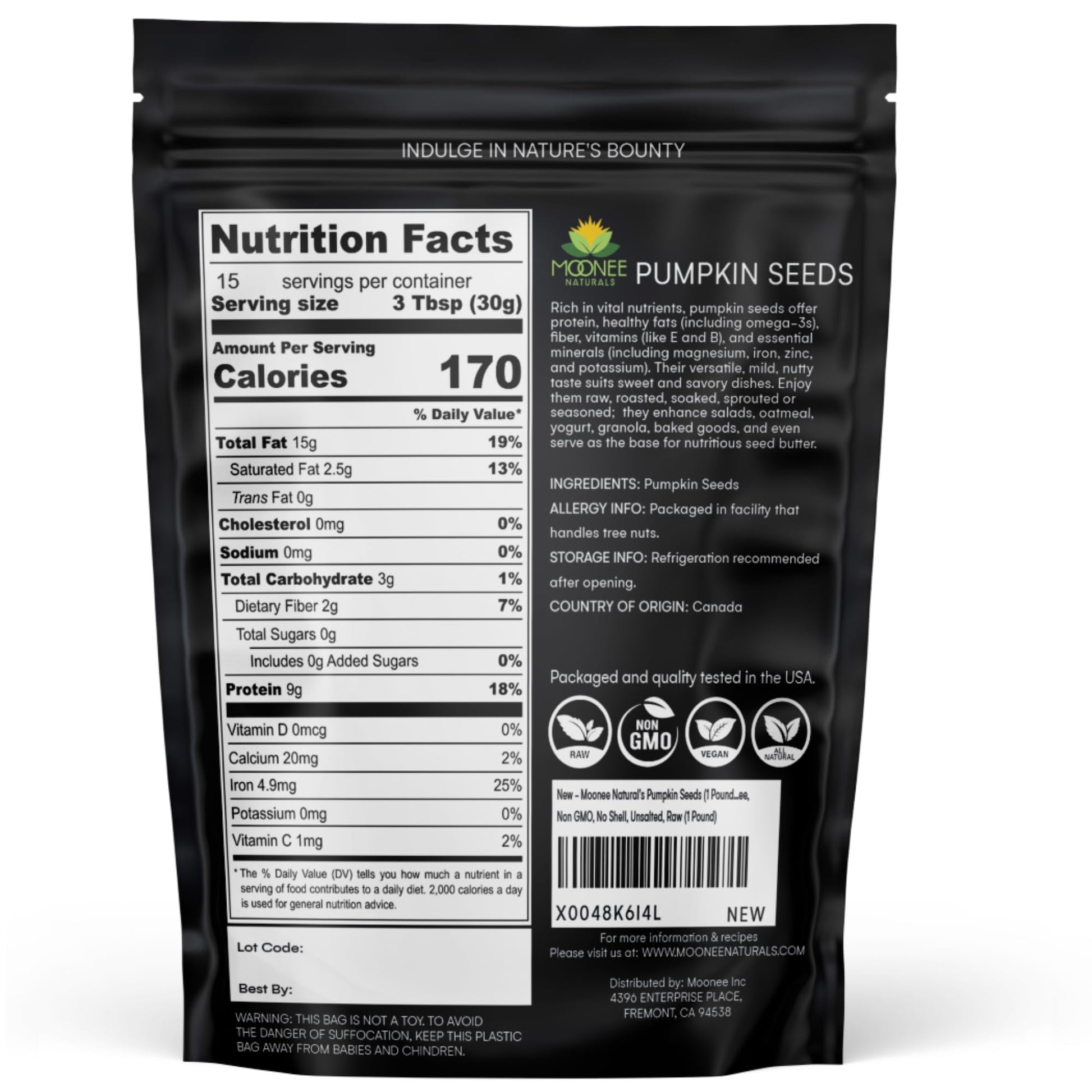 Crunchy Snack: Moonee Naturals pumpkin seeds are a tasty, nutritious snack packed with protein, fiber, vitamins, and minerals that support heart and immune health.