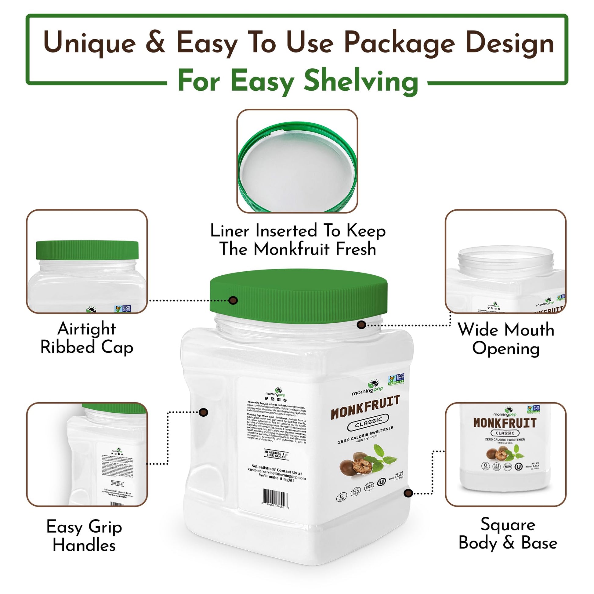 - Q: Is this sweetener certified non-GMO and kosher? A: Yes, Morning Pep Monk Fruit Sweetener is Non-GMO Project Verified, ensuring it is free from genetically modified organisms. Additionally, it is OU Kosher certified, making it suitable for those observing kosher dietary laws.