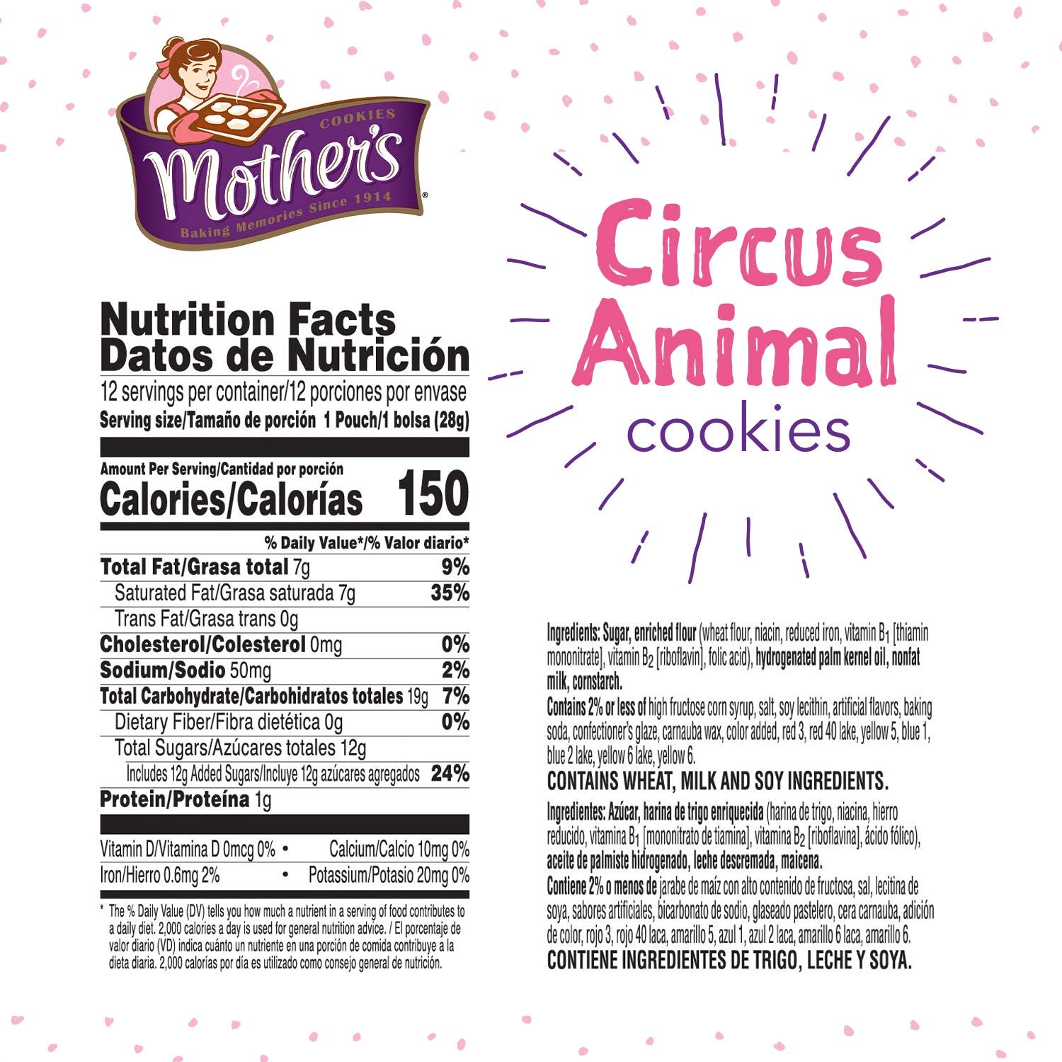 Q: Are Mother's Circus Animal Cookies suitable for children?A: Yes, Mother's Circus Animal Cookies are a popular treat among children due to their fun shapes and sweet flavors. However, always supervise young children while eating to prevent choking.