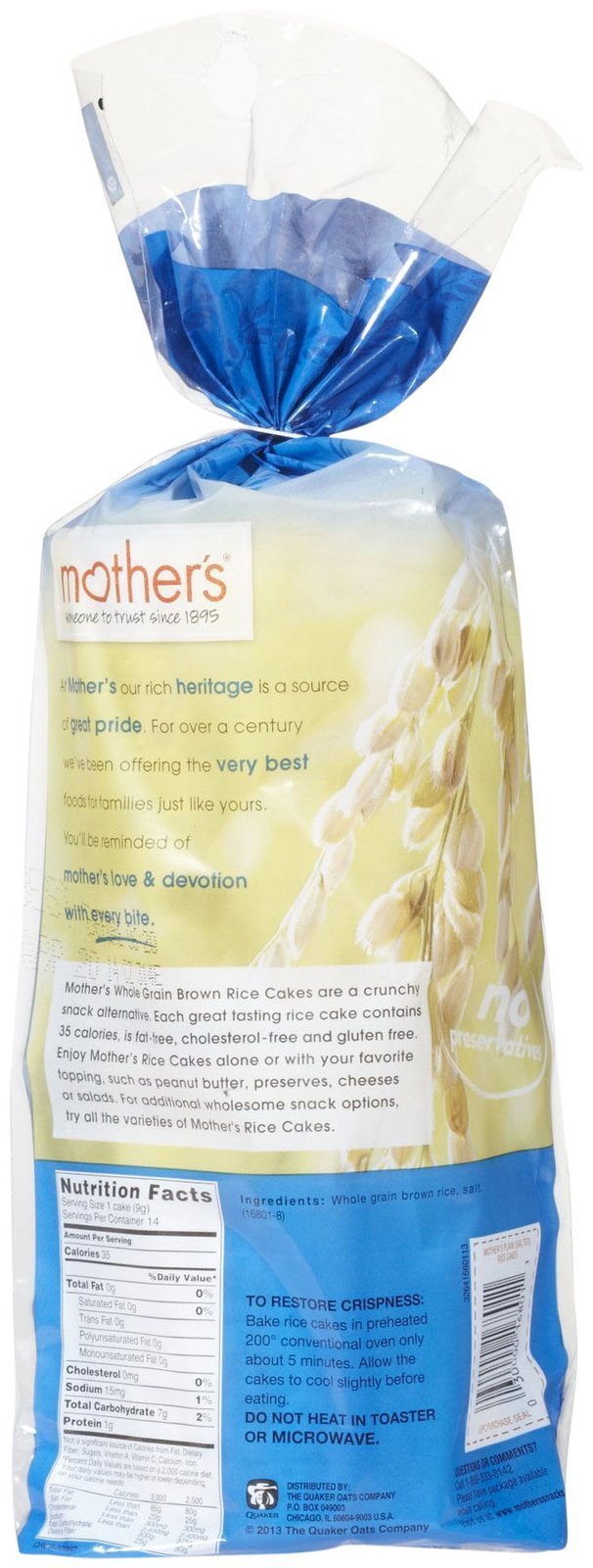 Mother'S Whole Grain Rice Cakes Plain Salted, 4.5 Ounce
