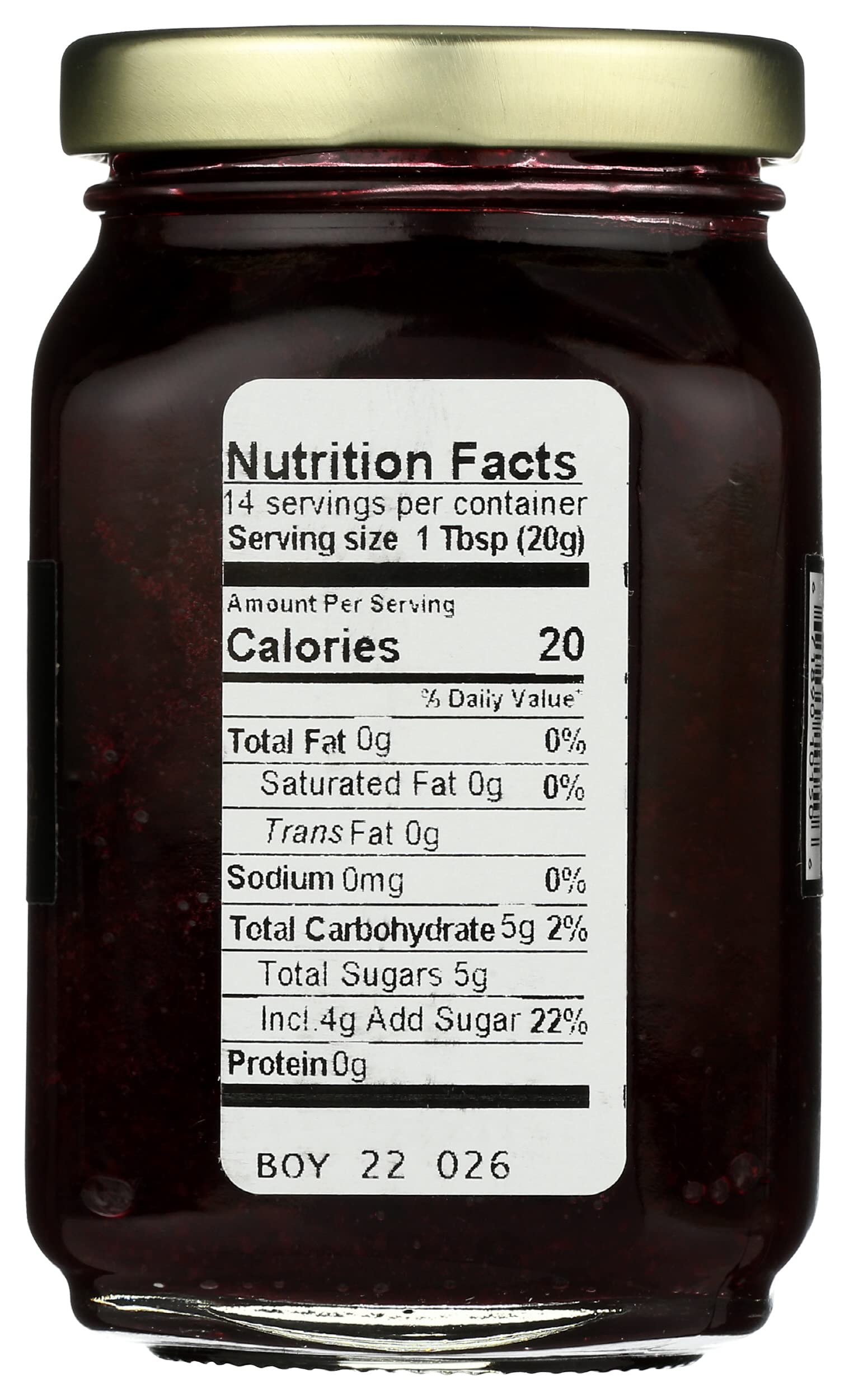 Q: What is the net weight of the Boysenberry Jam jar?A: The Boysenberry Jam comes in a 9.5 oz glass jar, providing a generous amount for enjoyment in various recipes and snacks.