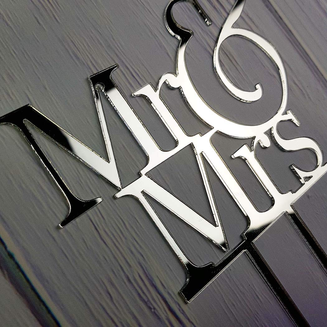 Q: What material is the Mr and Mrs Cake Topper made of?A: The Mr and Mrs Cake Topper is made of high-quality acrylic, making it safe, non-toxic, and reusable for your special occasions.