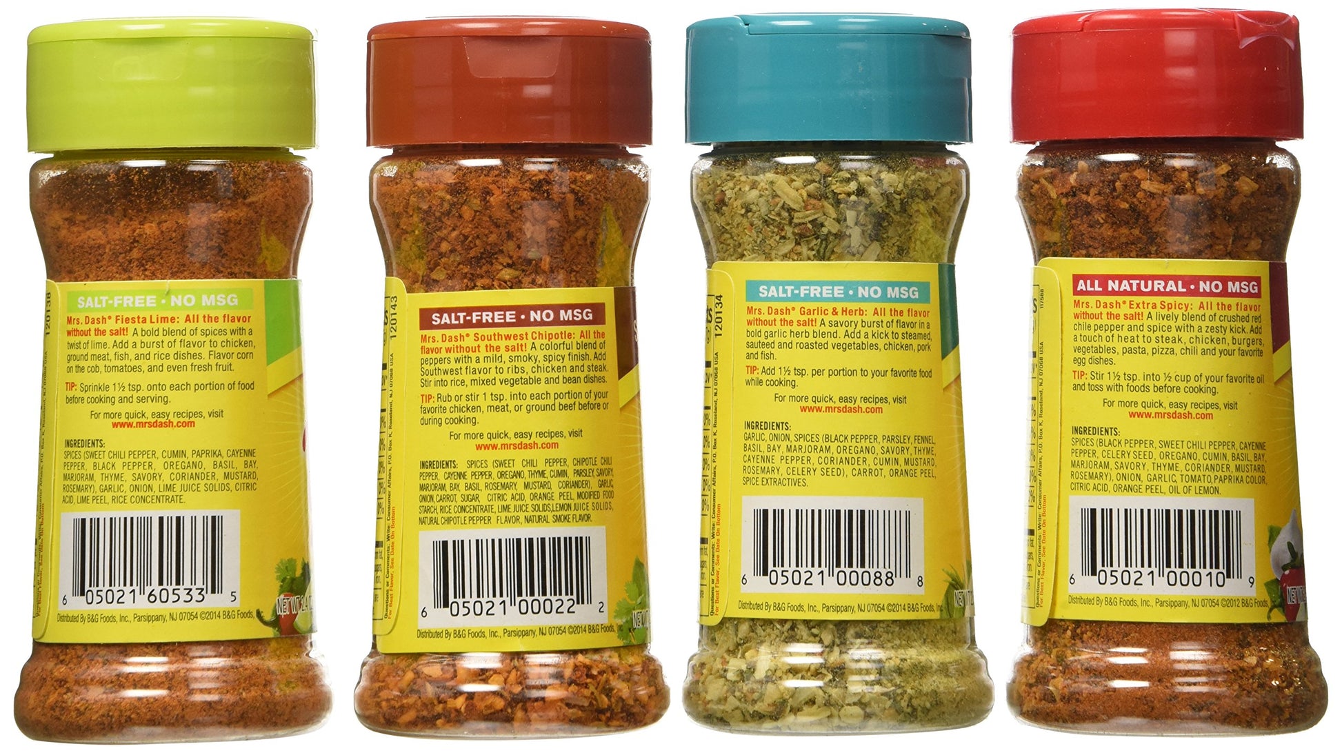 Mrs. Dash Extra Spicy(2.5oz), Southwest Chipotle(2.5oz), Garlic & Herb (2.5oz) and Fiesta Lime (2.4oz) Salt-Free Seasoning (Bundle)