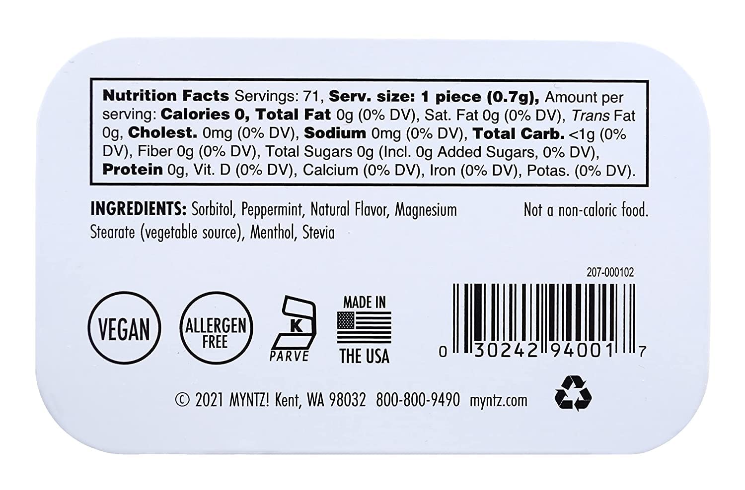 - Q: Are Myntz Blast Breathmints suitable for people with dietary restrictions? A: Yes, Myntz Blast Breathmints are sugar-free and do not contain aspartame, making them suitable for those looking to avoid sugar or artificial sweeteners. Always check the ingredient list if you have specific allergies.