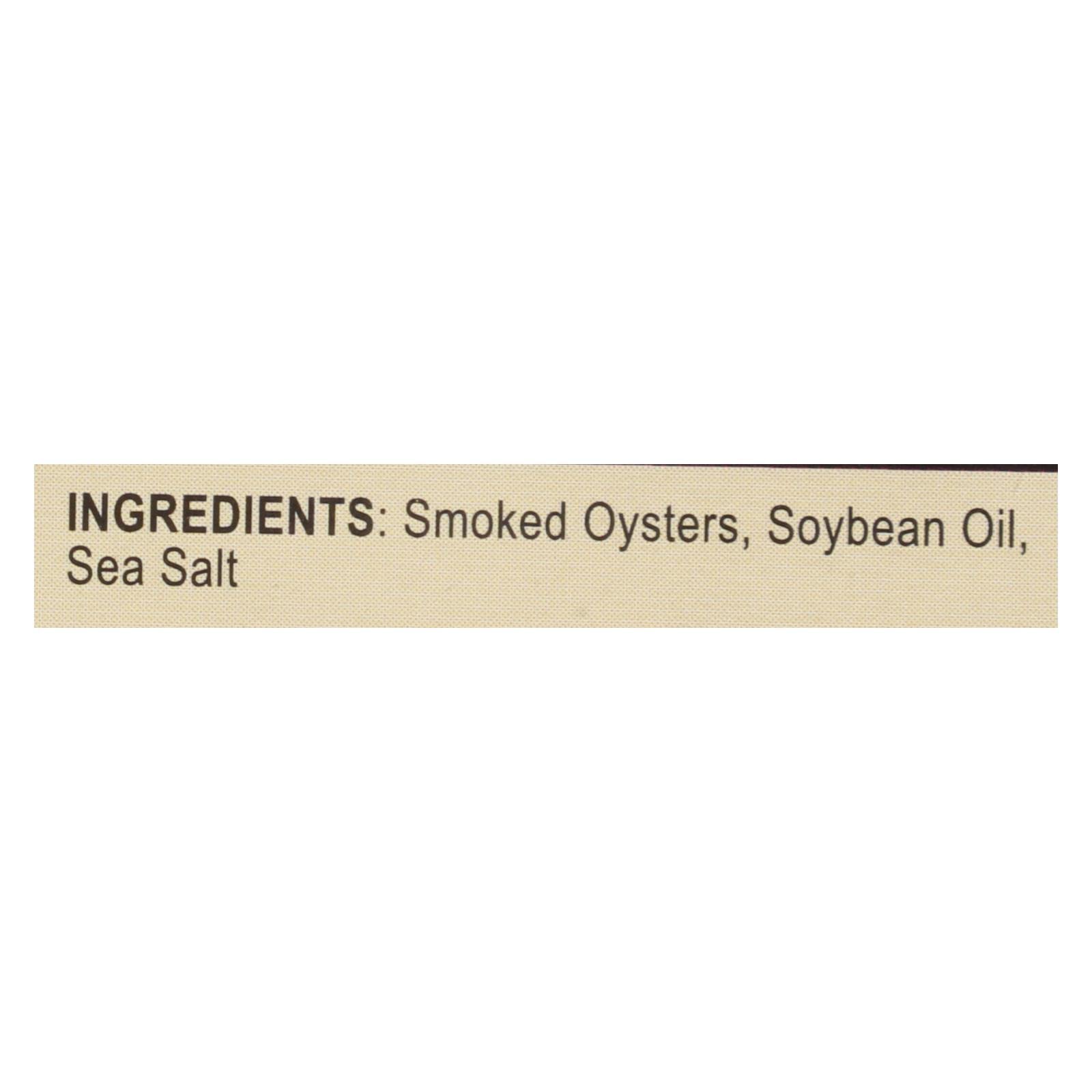 Key Features:- Pack of 25 tins, each containing 3.66 ounces of smoked oysters.