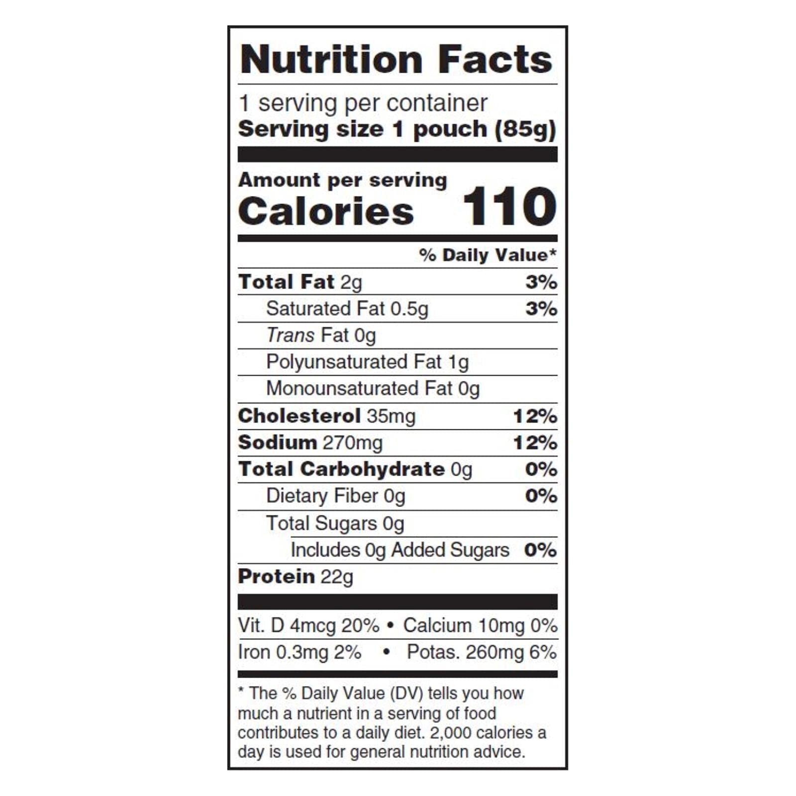 Q: How much tuna is included in each pouch, and how many pouches come in a case?A: Each pouch contains 3 ounces of solid white albacore tuna, and there are 12 pouches per case, providing ample supply for your cooking needs.