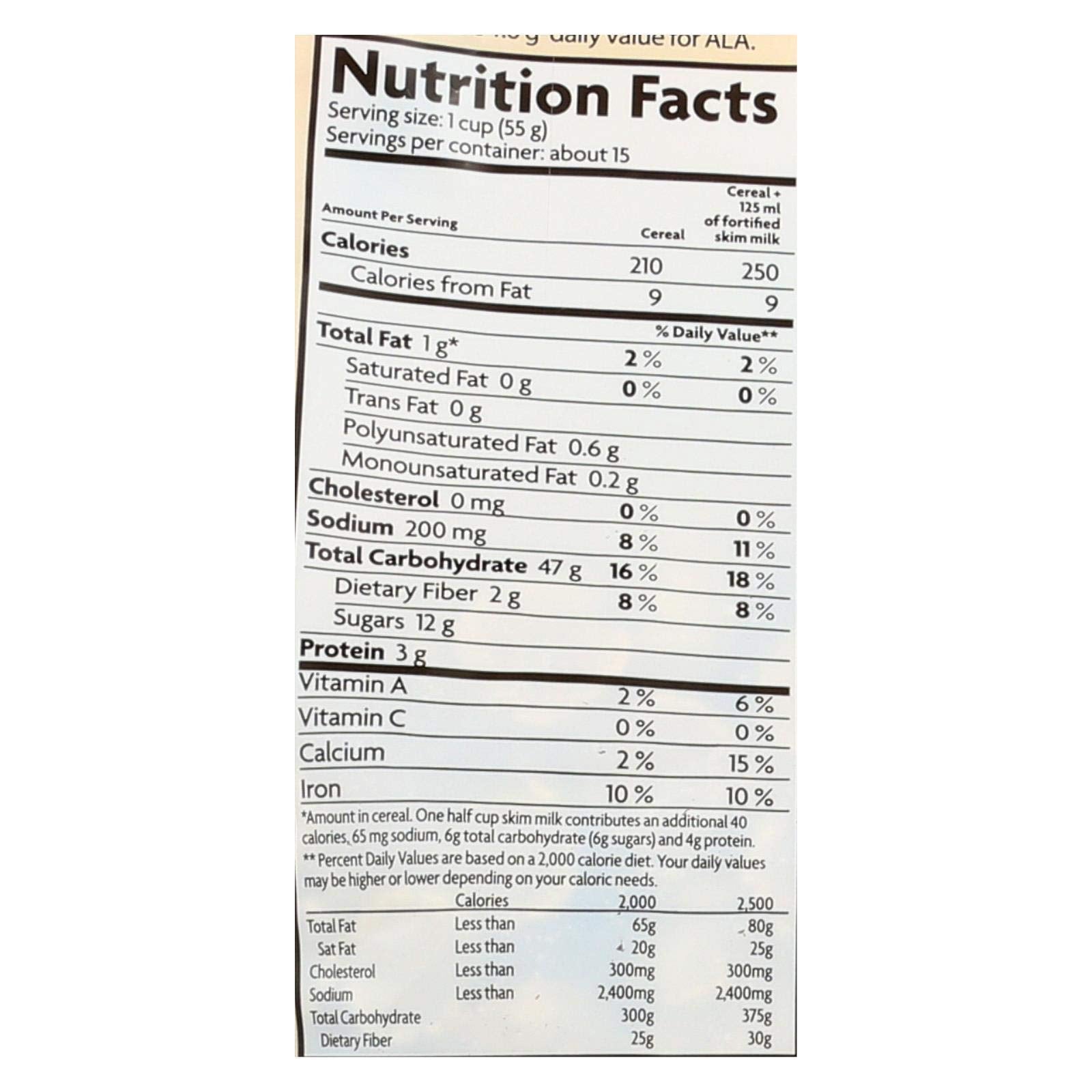 Natures Path Cereal Mesa Sunrise With Raisin. A Unique Medley Of Indian Corn, Flax, And Amaranth Blended Into Crunchy, Golden Cereal Flakes With Organic Raisins And Naturally Sweetened--The Same Best Selling Mesa Sunrise Cereal With Organic Raisins Added To It. The Product Temperature Is Ambient Room Temperature.