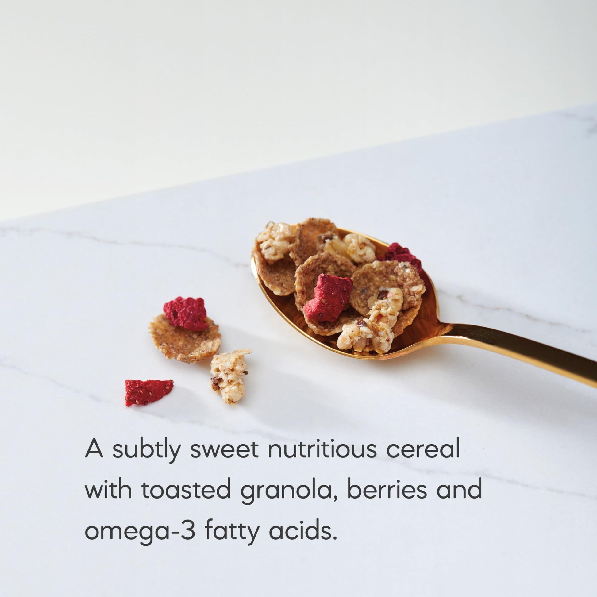 Q: What are the main ingredients in Nature's Path Organic Flax Plus Red Berry Crunch Cereal?A: Nature's Path Organic Flax Plus Red Berry Crunch Cereal is made with organic ingredients including oat bran, flax seeds, freeze-dried strawberries, and raspberries. It also features nutrient-dense whole wheat flakes and toasted granola clusters.