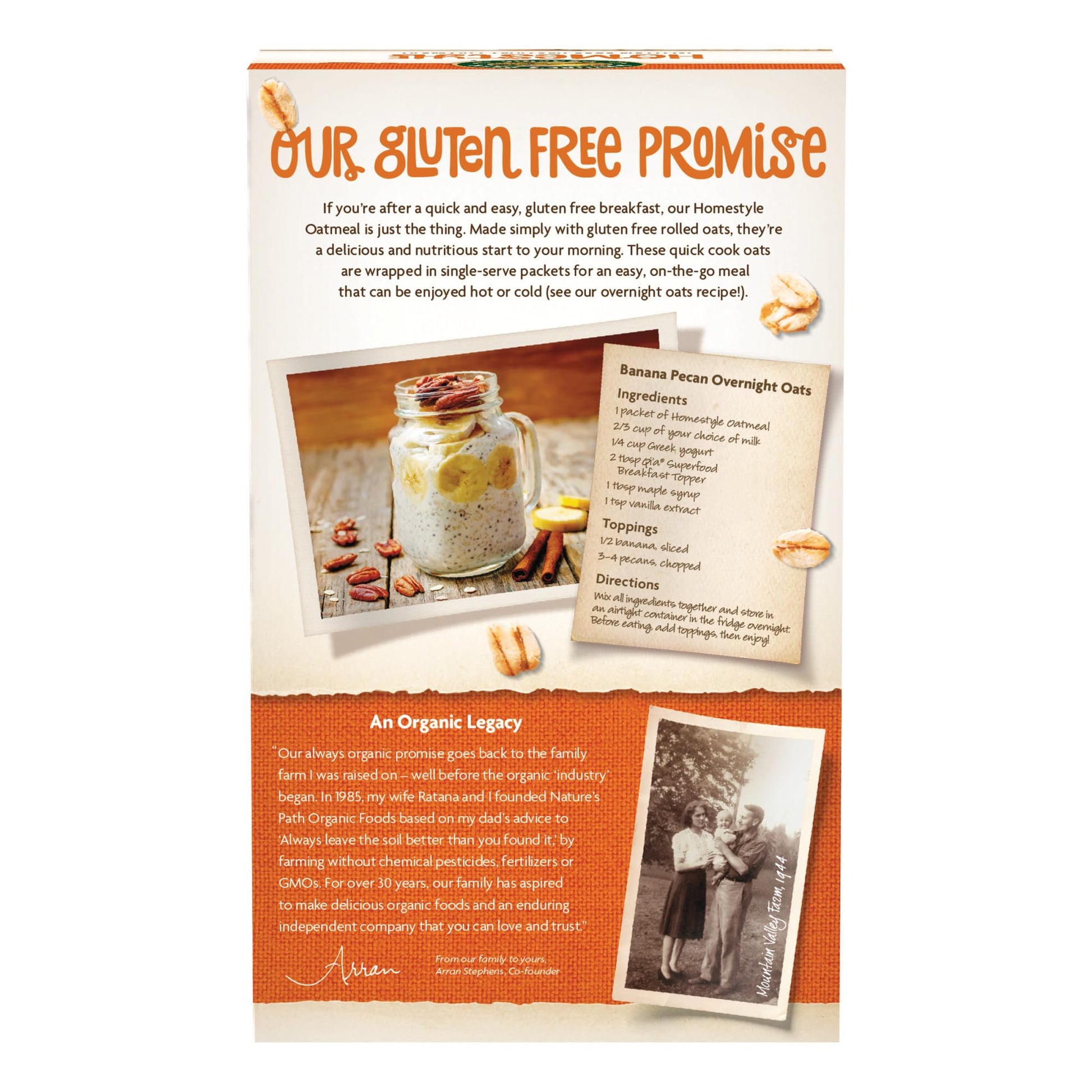 Q: Is Nature's Path Organic Homestyle Oatmeal gluten free?A: Yes, Nature's Path Organic Homestyle Oatmeal is certified gluten free, making it a safe choice for individuals with gluten sensitivities.