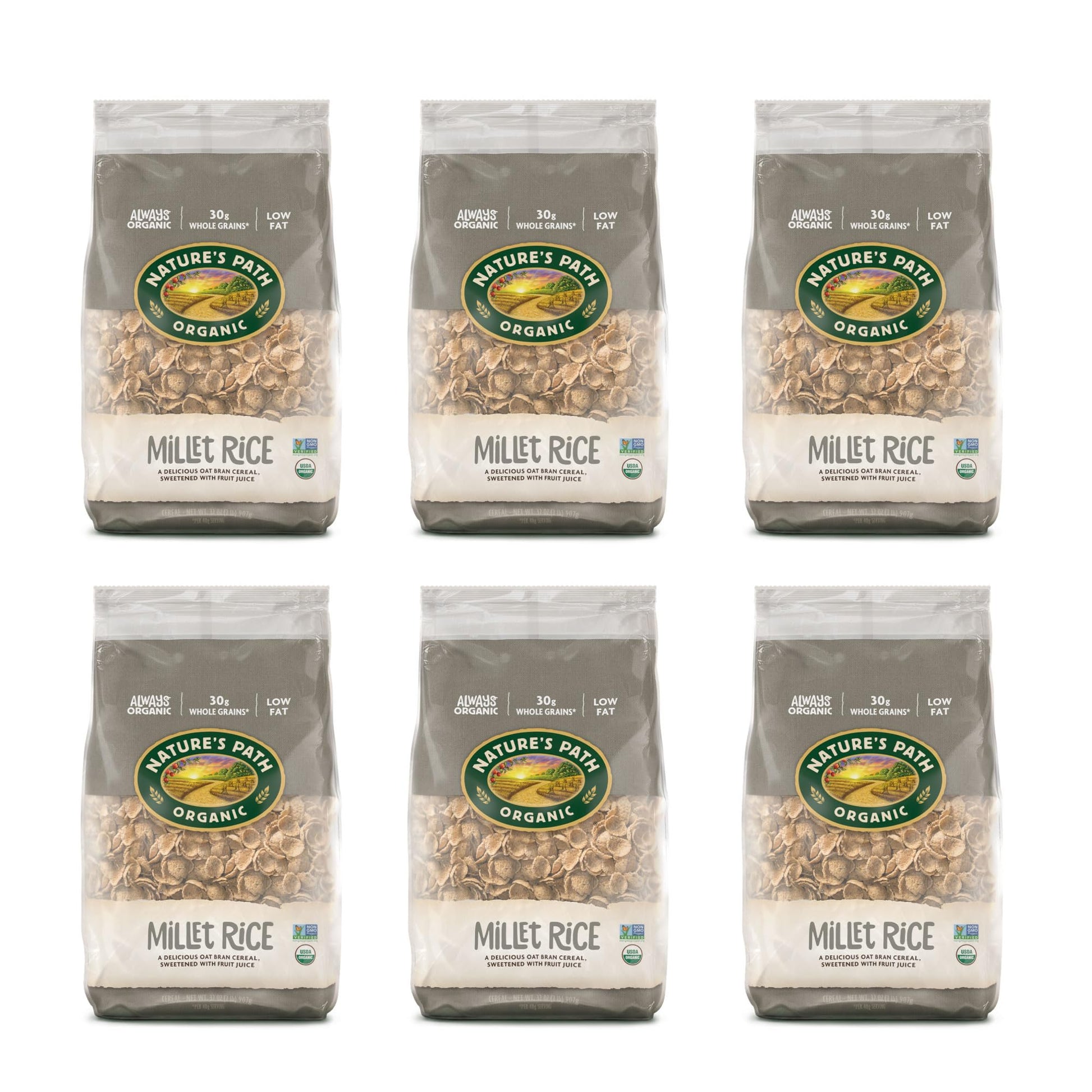 Nature'S Path Organic Millet Rice Flakes Cereal, 32 Oz (Pack Of 6), Non-Gmo, Earth Friendly Packaging
