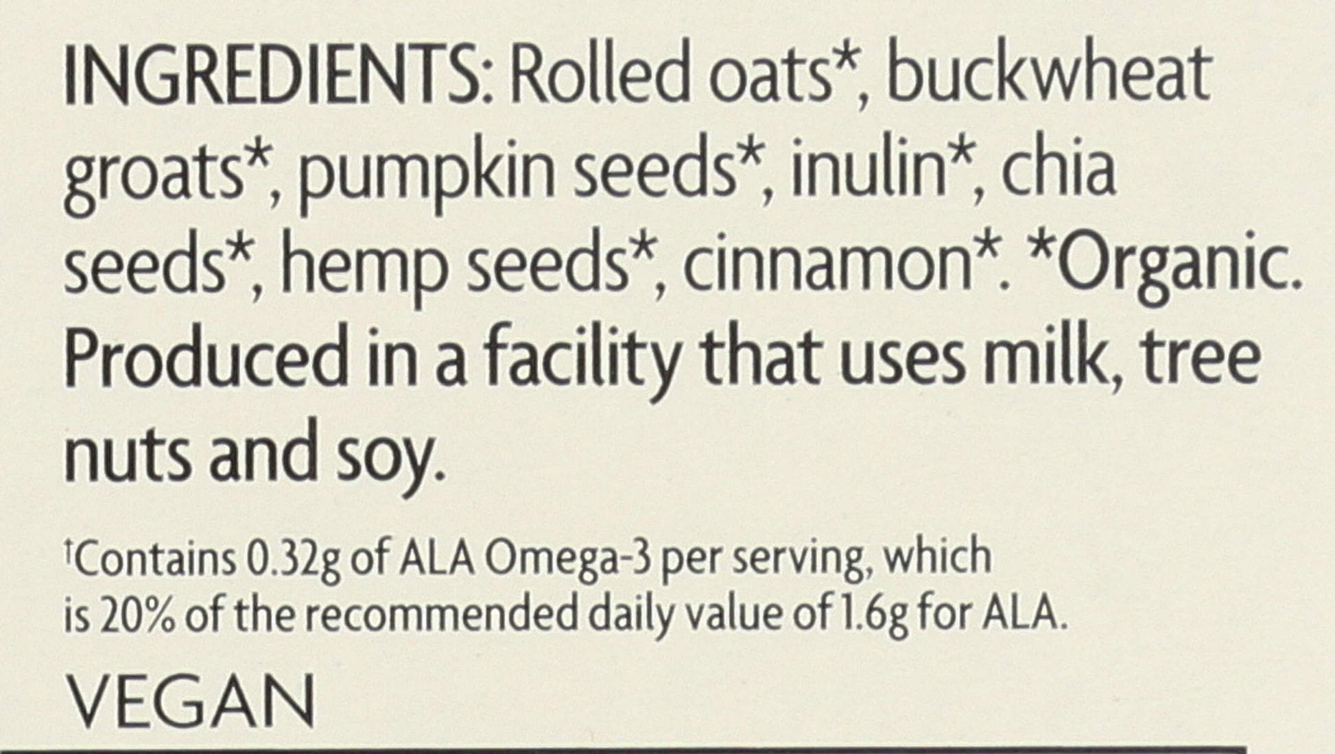 Nature's Path cinnamon pumpkin seed oatmeal is made with all Non-GMO project verified and certified USDA organic ingredients including rolled oats, buckwheat groats and chia seeds. One box of Nature's Path contains six packets of gluten-free oatmeal produced without any added salt. Nature's Path oatmeal is an excellent source of omega-3 fatty acids and provides 31 gram of whole grains per serving, for a breakfast that provides long lasting energy.