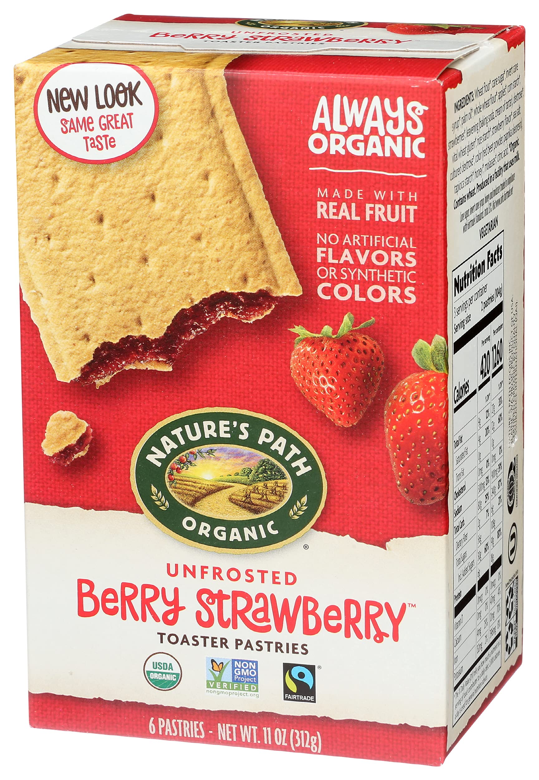 Naturally flavored. No trans fat! USDA organic. We believe food should be delicious and nutritious. And that when organically grown, its better for both of you and the environment. Our organic foods contain no preservatives or additives, and are grown without synthetic pesticides, herbicides or fungicides which agribusiness typically spray onto food. These chemicals then find their way into the soil, water, air and eventually our bodies. Nothing can replace the richness and complexity of nutrients found in a varied diet of fresh, organic whole foods, and Natures Path organic snacks and breakfast foods are a great way to get started down the organic path. Natures Path Organic Toaster Pastries: A delicious snack! Eat them straight from the package or warmed in the toaster, just eat them! Theyre easy to carry and fun to eat as a lunch snack, after school, or anytime you get the munchies. Packed with the wholesome goodness of USDA certified organic ingredients the whole wheat content and real organic fruit fillings make Nature?s Path Organic Toaster Pastries a healthier choice- any age, anytime, anywhere. Just eat them. Storage: Natures Path Organic Toaster Pastries stay fresh on the kitchen shelf. This product does not require refrigeration. Best when used before date on end panel. Product of Canada.