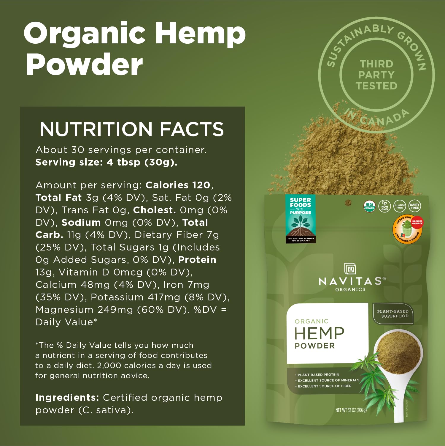 Navitas Organics Hemp Powder, 32 oz. Bag, 30 Servings - Organic, Non-GMO, Cold-Pressed, Gluten-Free