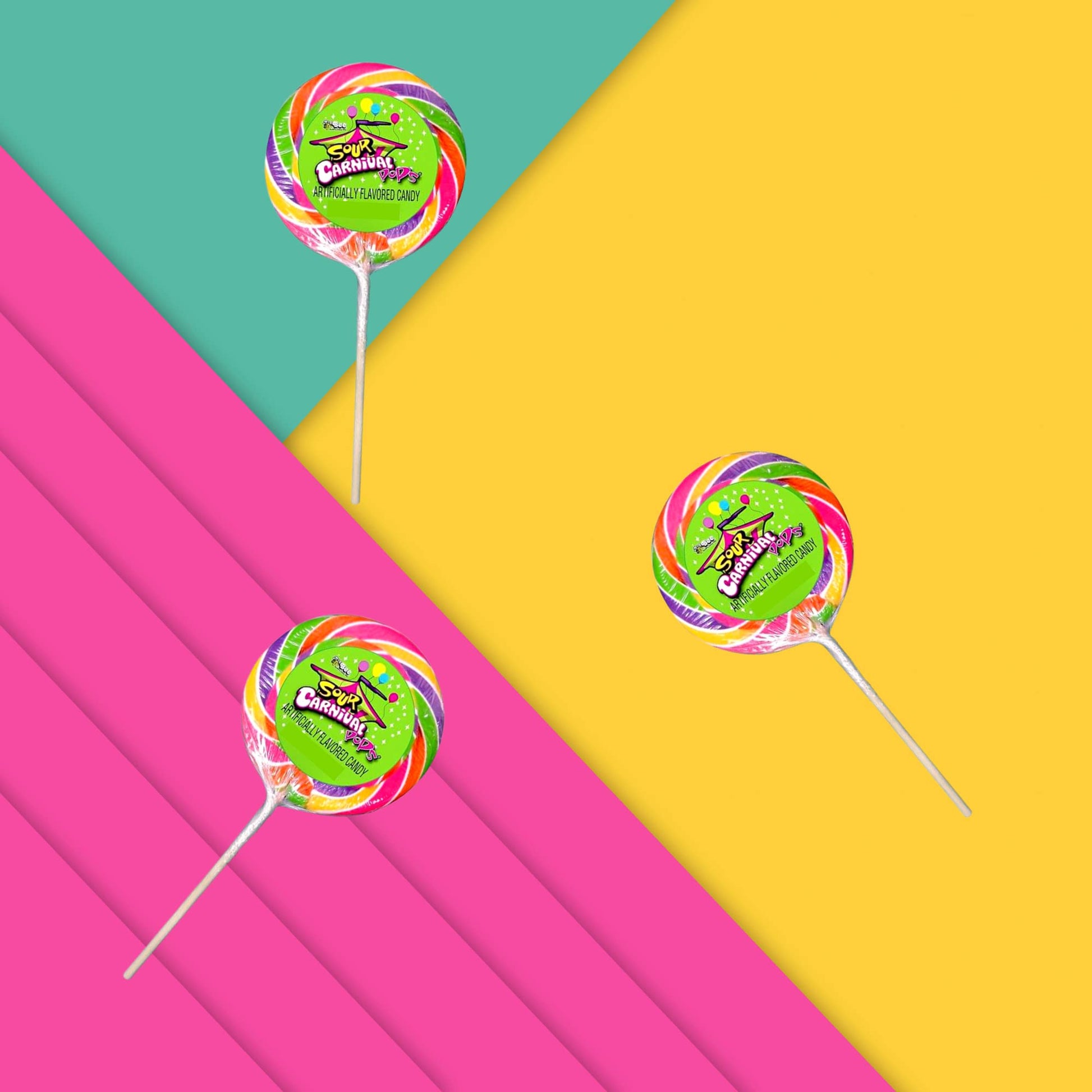 Q: How many lollipops are in each pack?A: Each pack contains a total of 28 individually wrapped lollipops, divided into 2 bags of Carnival Swirl Lollipops and 2 bags of Sour Carnival Swirl Lollipops.