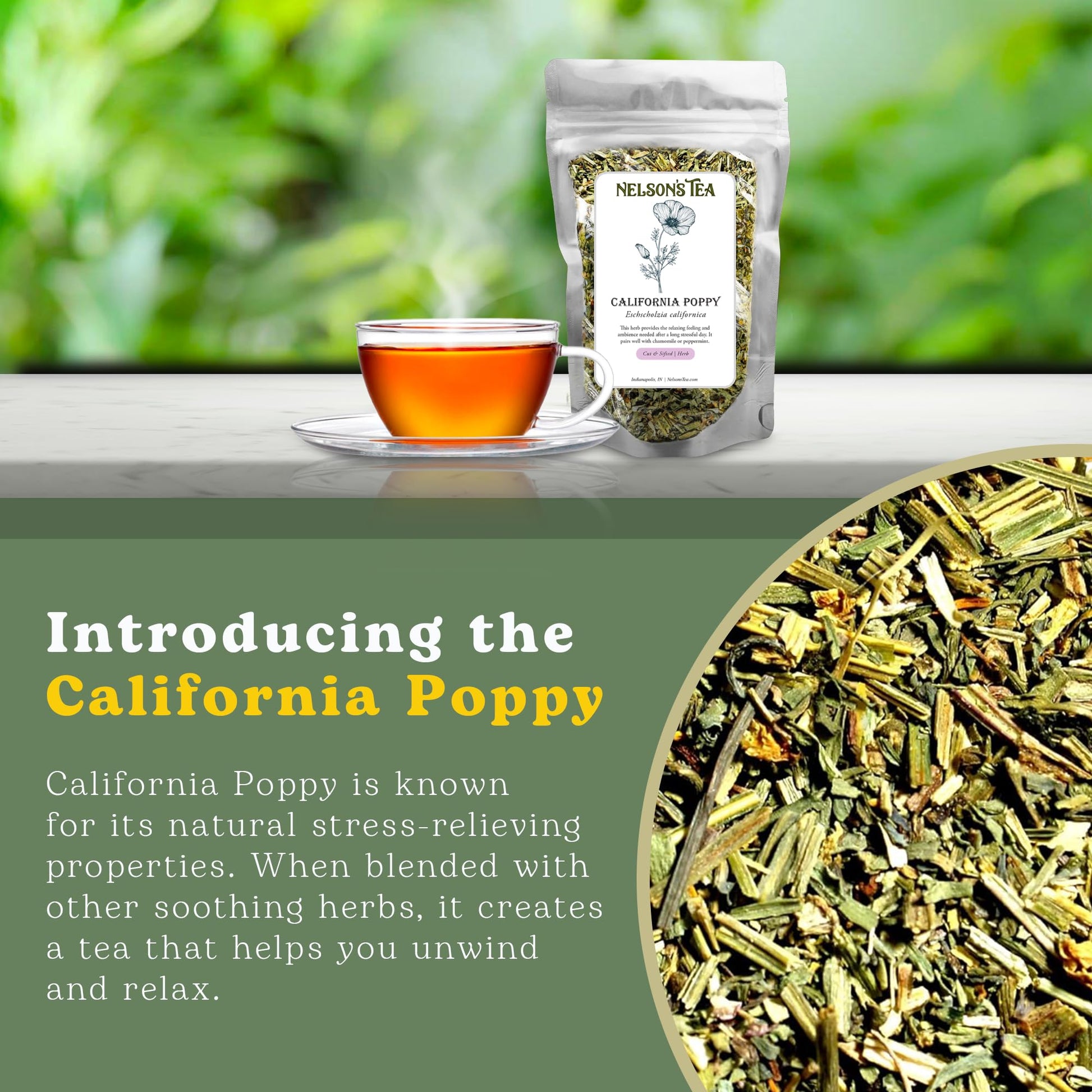 - Q: What makes this California Poppy blend different from others? A: Our California Poppy blend stands out because it is crafted from all-natural ingredients, free from fillers and additives. It is meticulously sourced and prepared to maintain its purity, ensuring you receive the full benefits of this herbal tea.