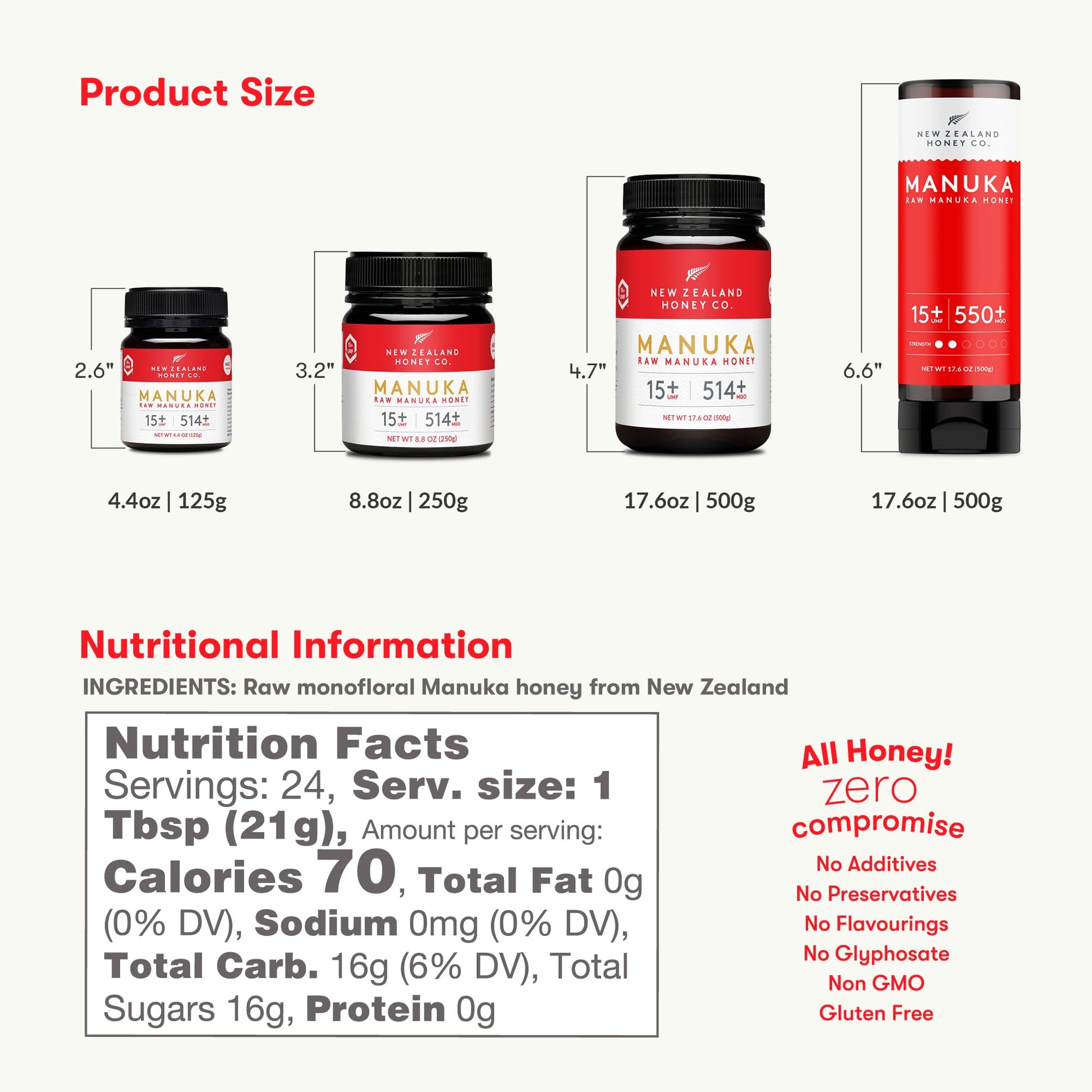 Unmatched Quality: This honey is certified UMF 15+, ensuring that you receive authentic Manuka honey with guaranteed potency and purity.