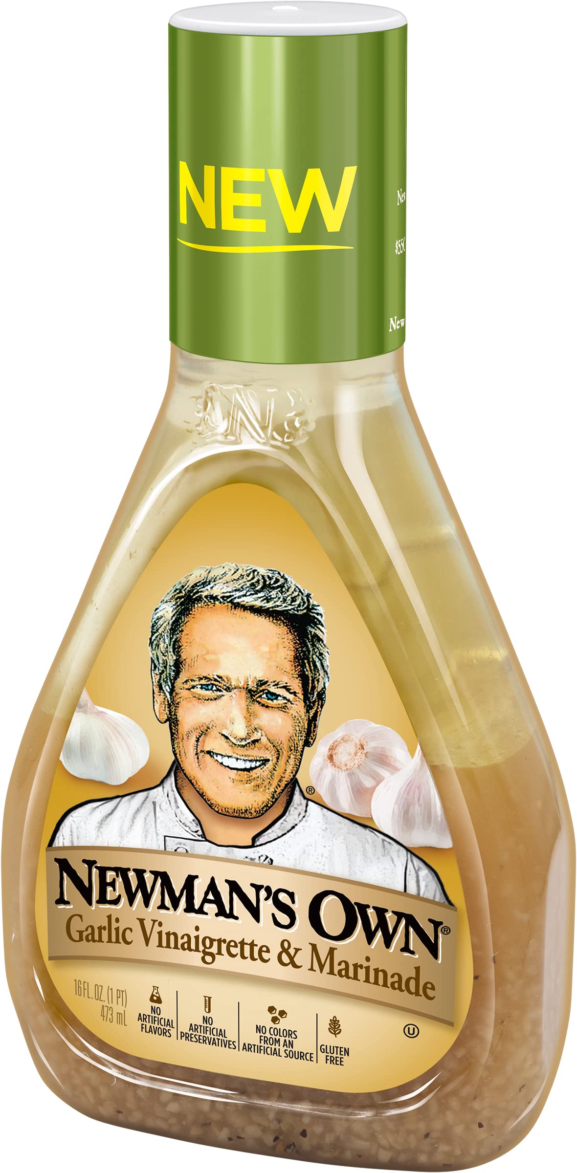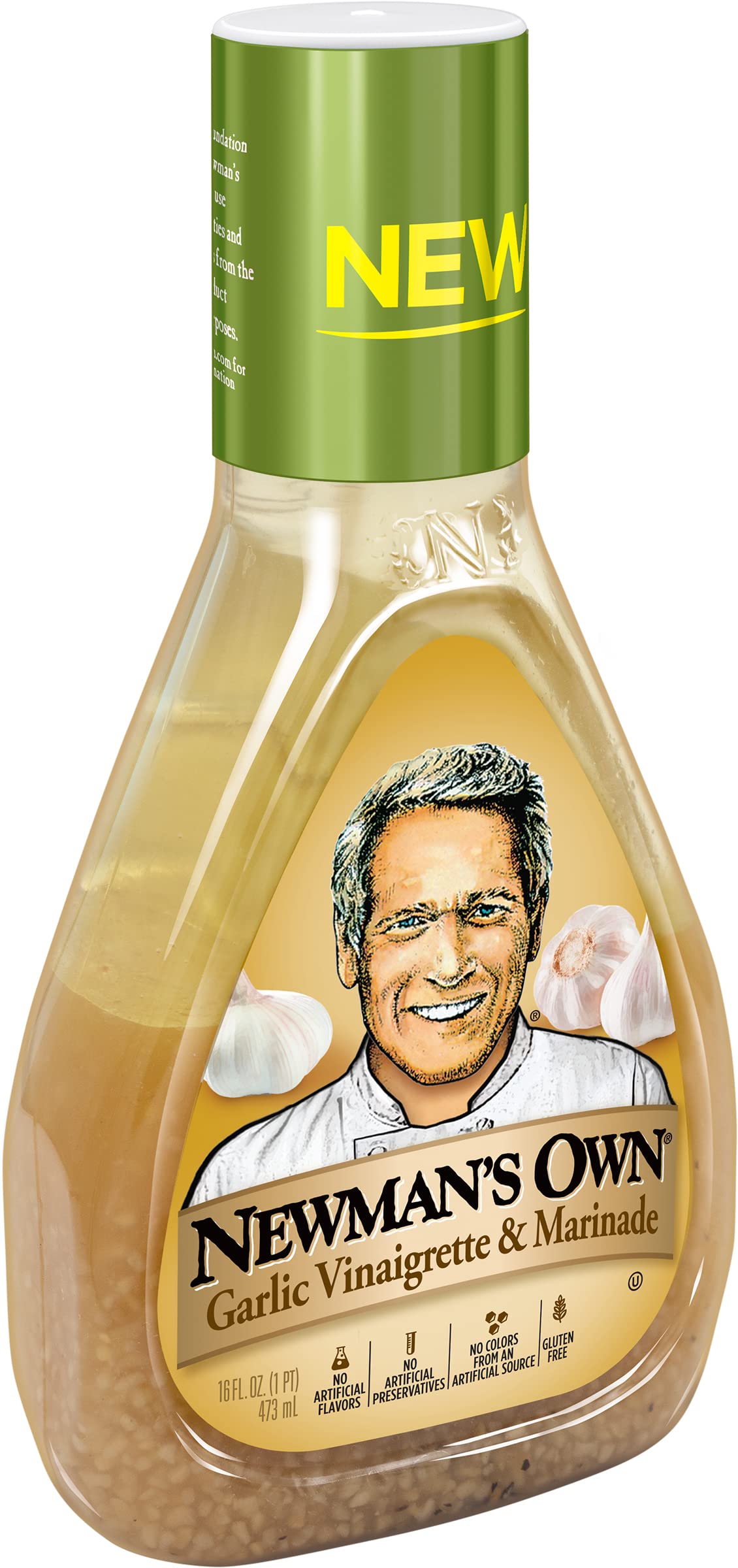 - Q: What are the key ingredients in Newman's Own Garlic Vinaigrette & Marinade? A: Newman's Own Garlic Vinaigrette & Marinade is made with premium ingredients, including chopped garlic cloves, providing a full-flavored garlic taste. It is also gluten-free and contains no artificial flavors, preservatives, or colors from artificial sources.