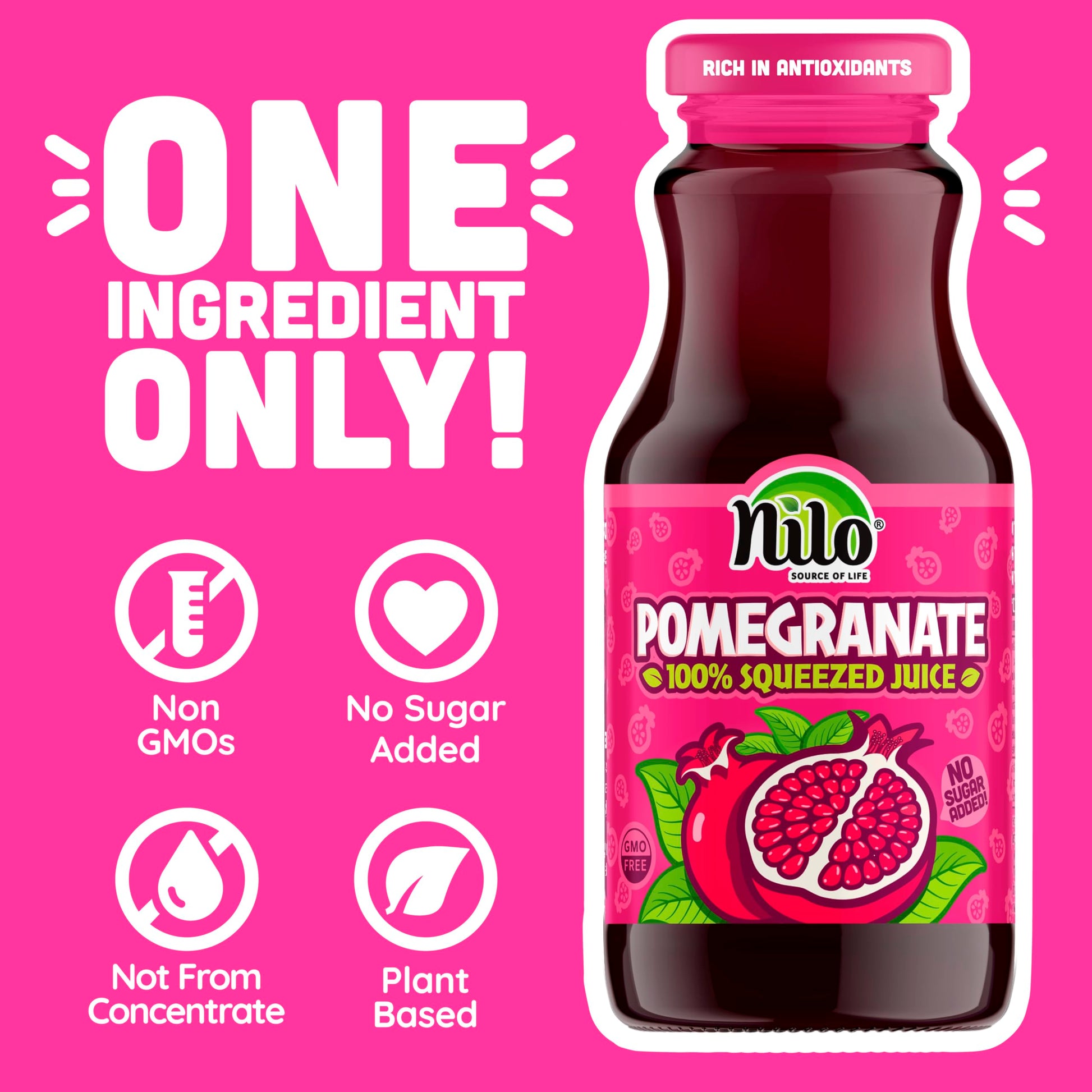Q: Is NILO Pomegranate Juice made from concentrate?A: No, NILO Pomegranate Juice is 100% pure and not made from concentrate. Each bottle is filled with freshly squeezed pomegranate juice, ensuring an authentic taste.