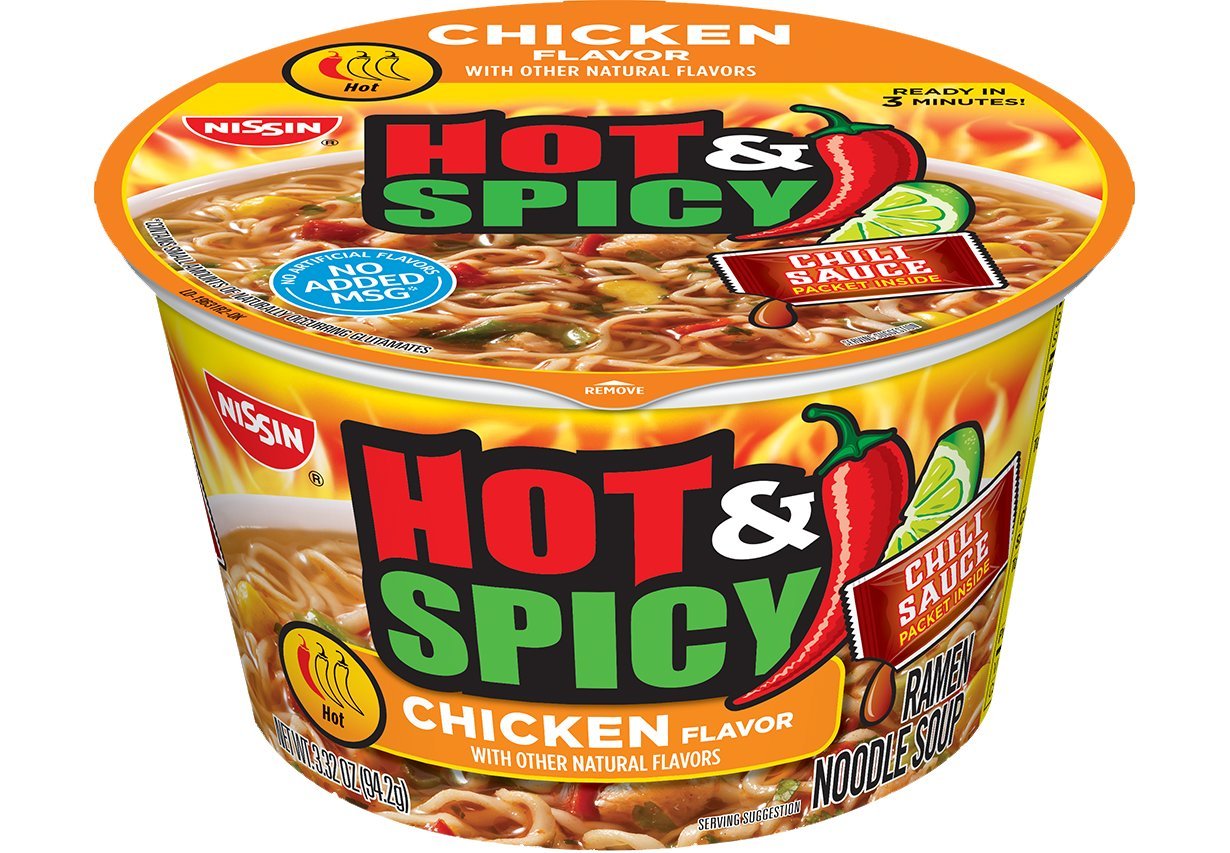 Q: What flavors are available in Nissin Bowl Noodles?A: In addition to the Hot & Spicy Chicken flavor, Nissin offers other delicious options like Shrimp, Fiery Beef, and Blazing Hot flavors.
